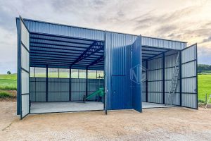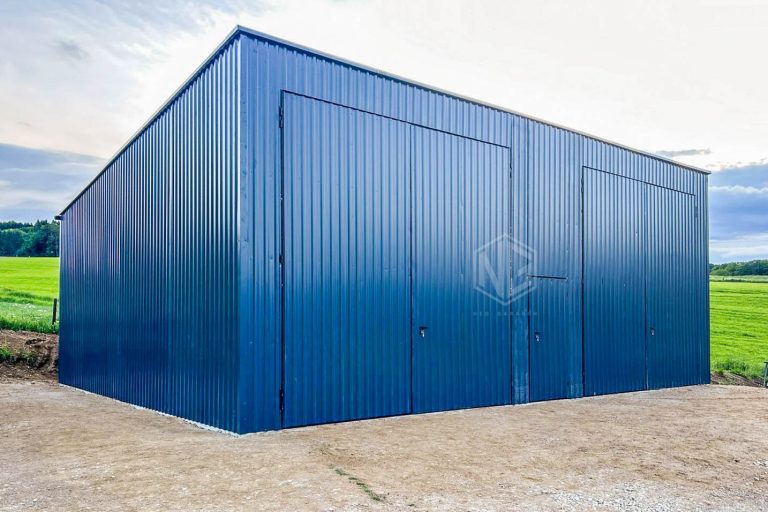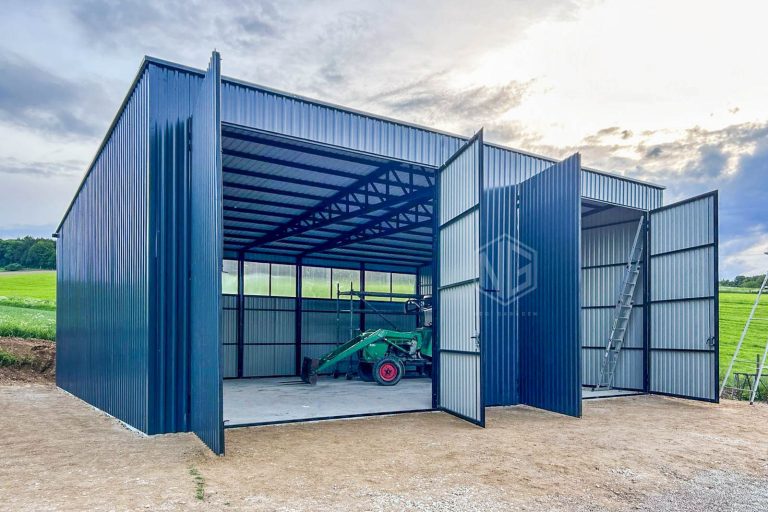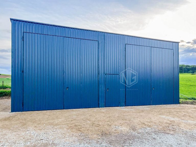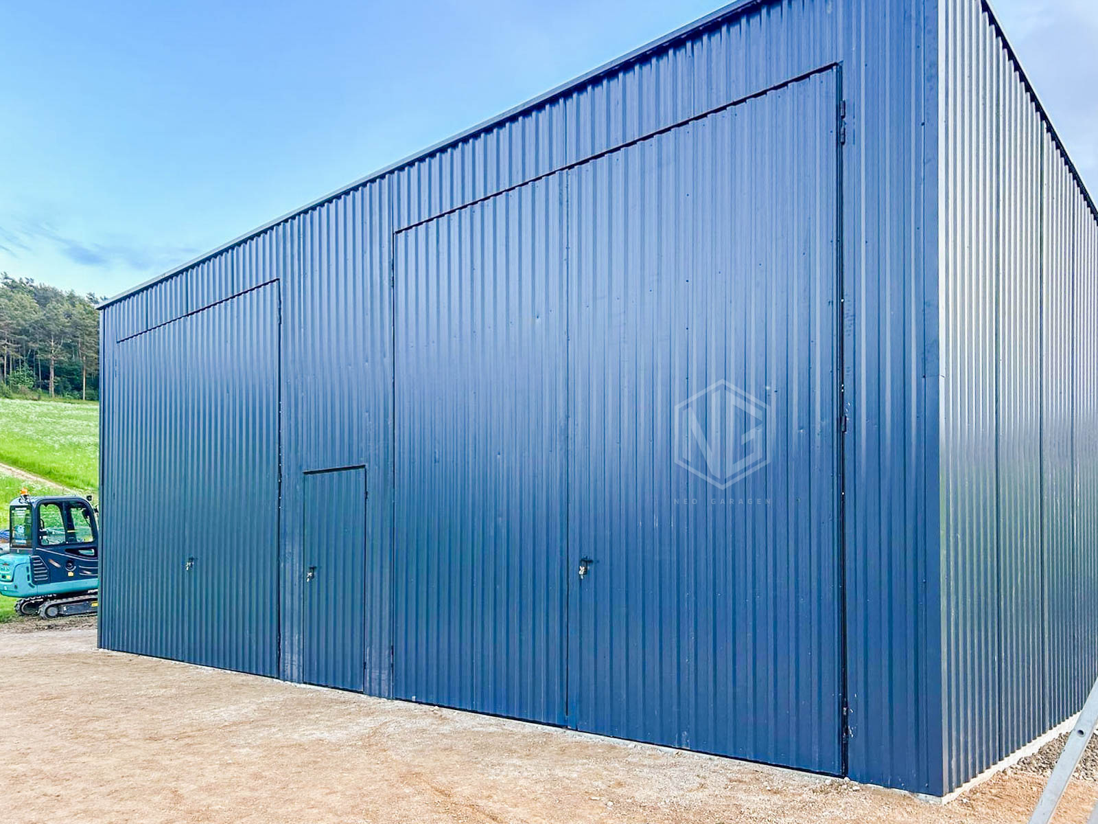 Halle – Blechgarage 12x6m – 2x Zweiflügeliges Tor – Tür – Anthrazit – Flachdach GP417