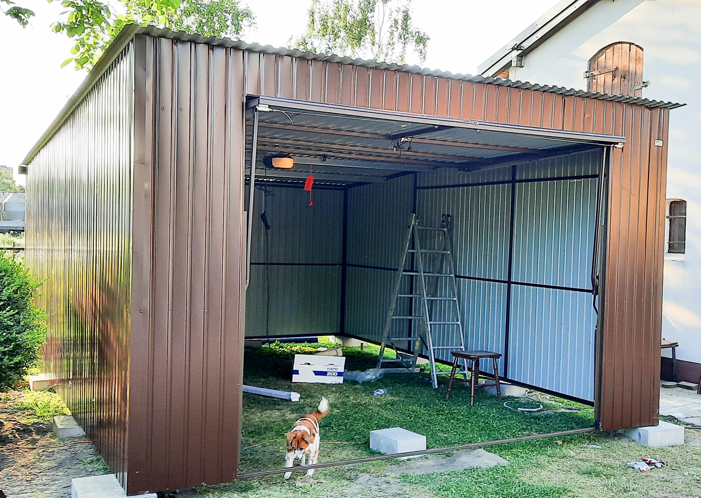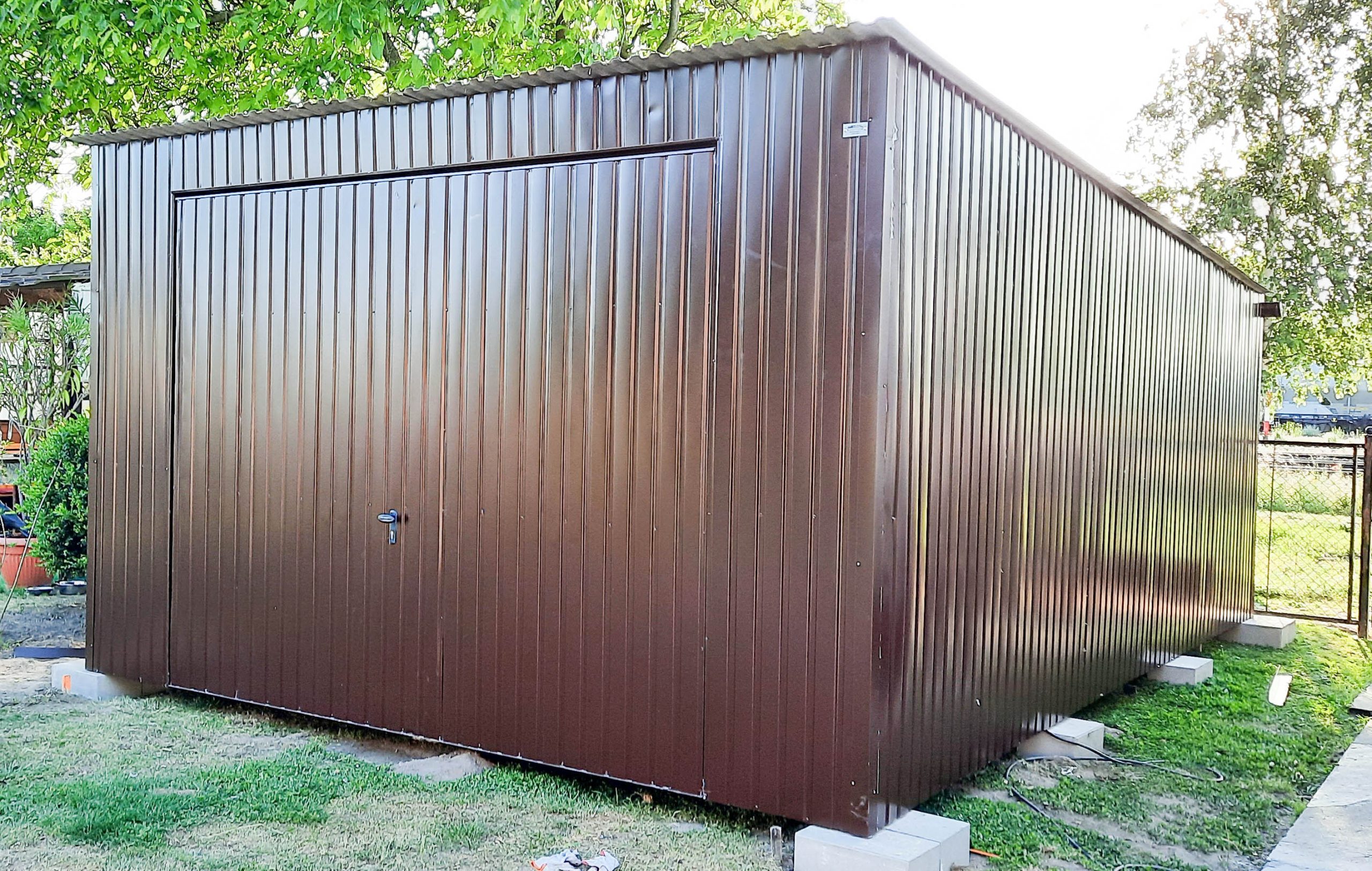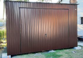 Blechgarage 4x6m Horizontal Blech Schwingtor Dunkles Braun Pultdach ID145
