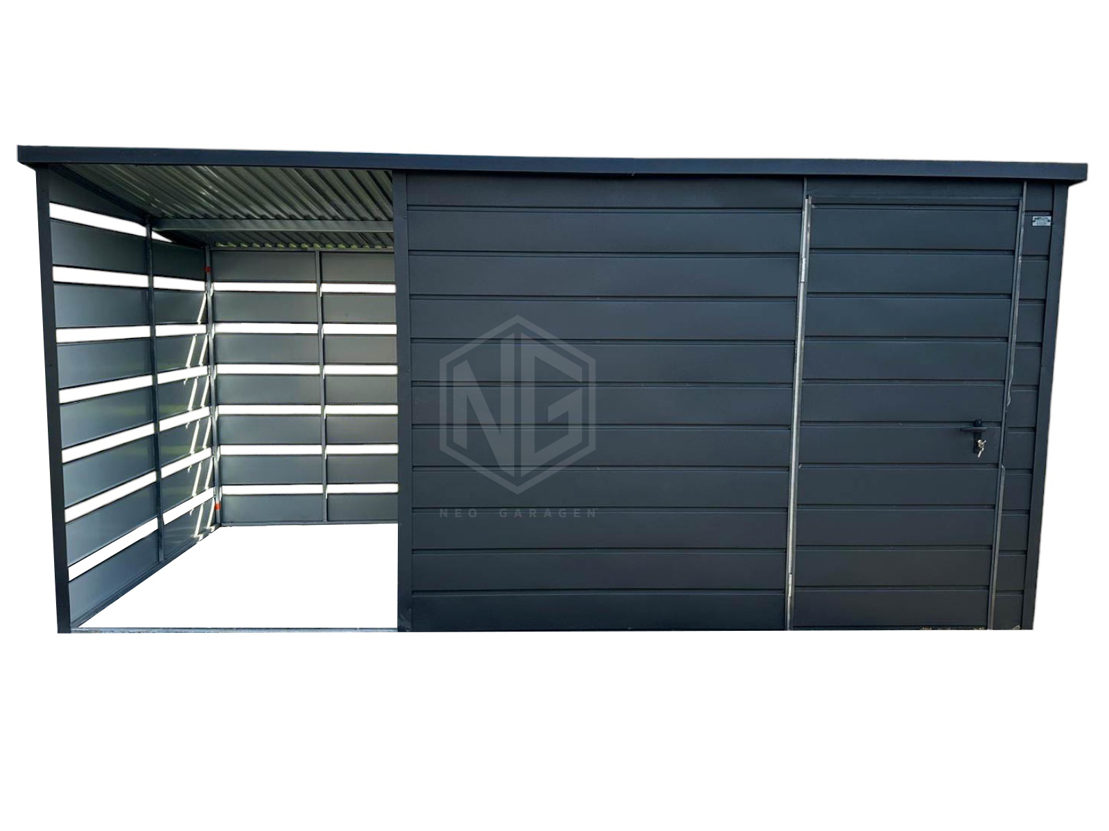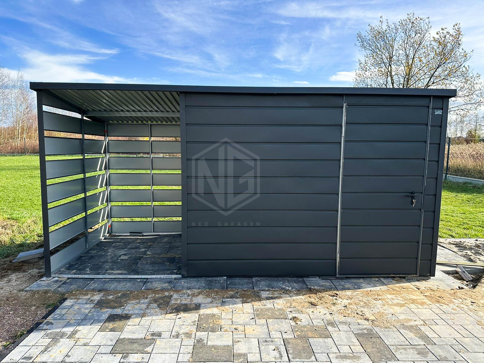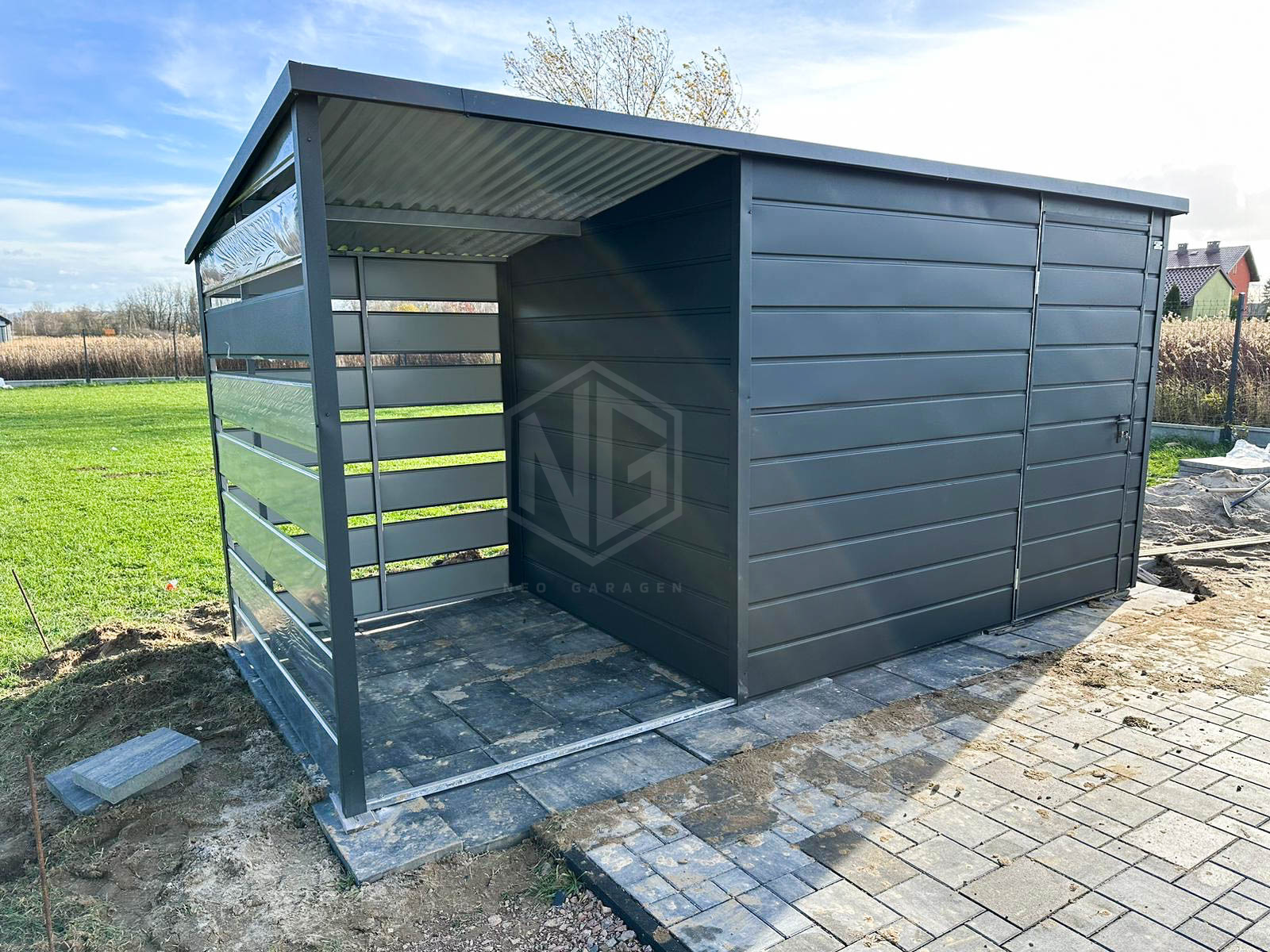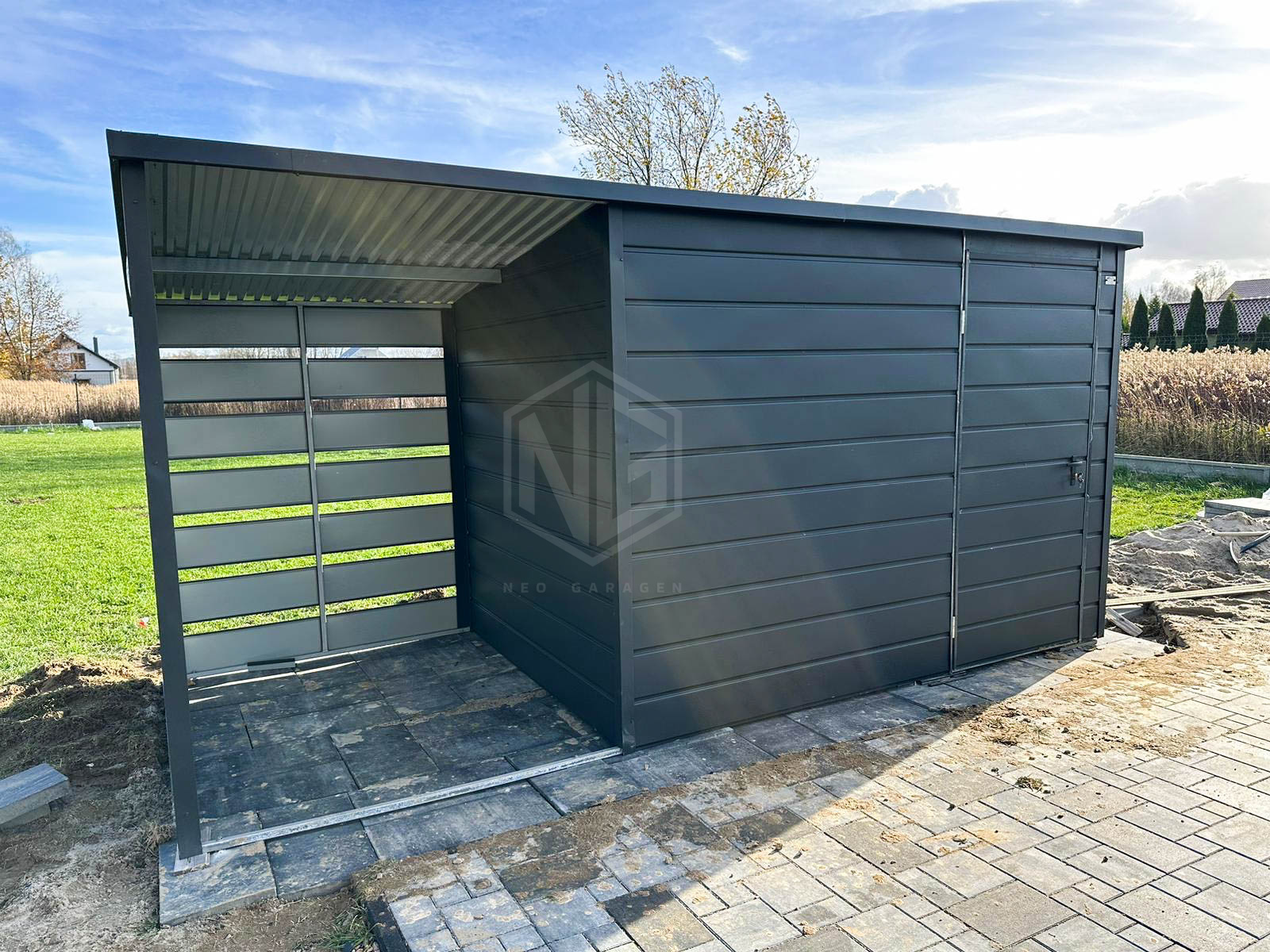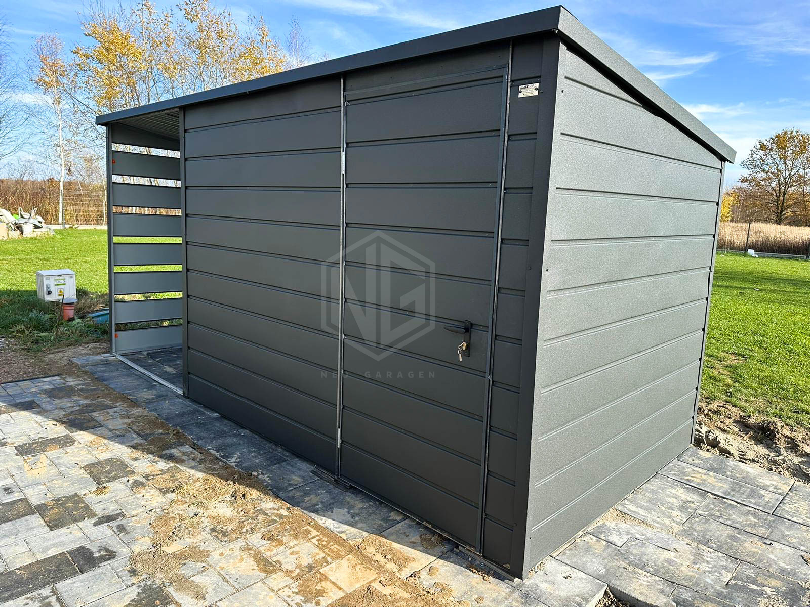 Gartenhaus 3x2m Überdachung 1,5×2 Tor Anthrazit Flachdach ID436