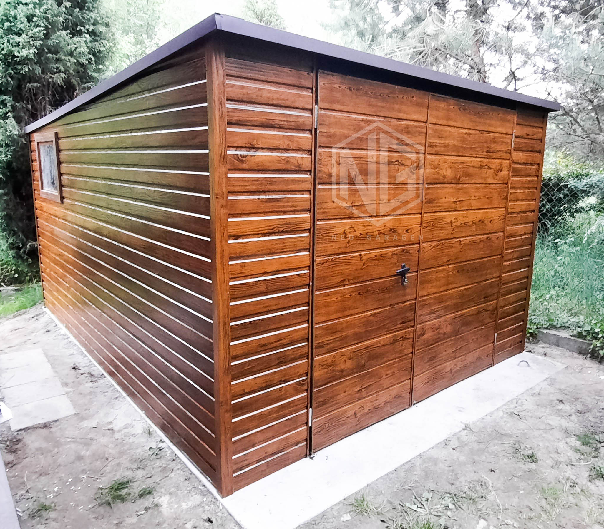 Gartenhaus 3x4m Schwingtor Holzoptik Pultdach ID135