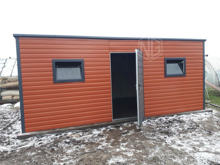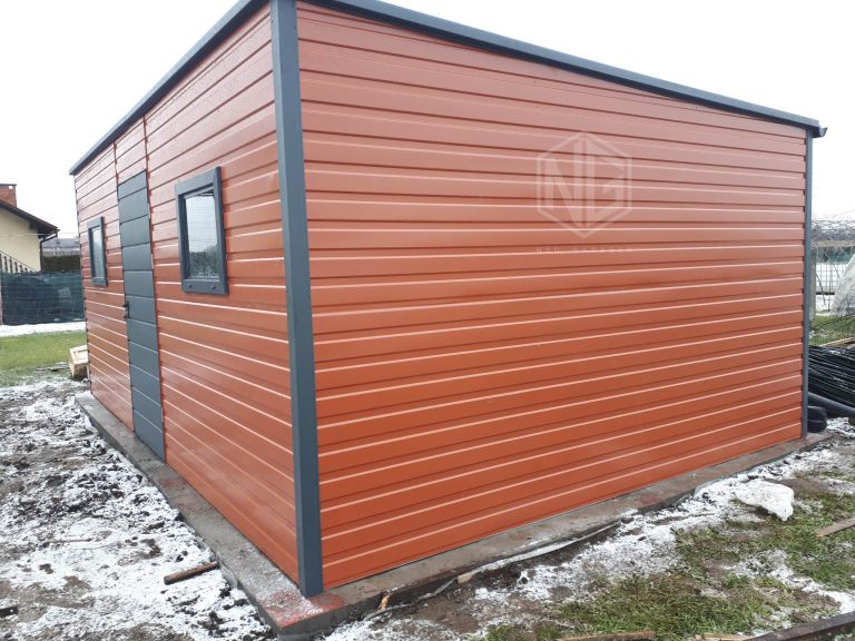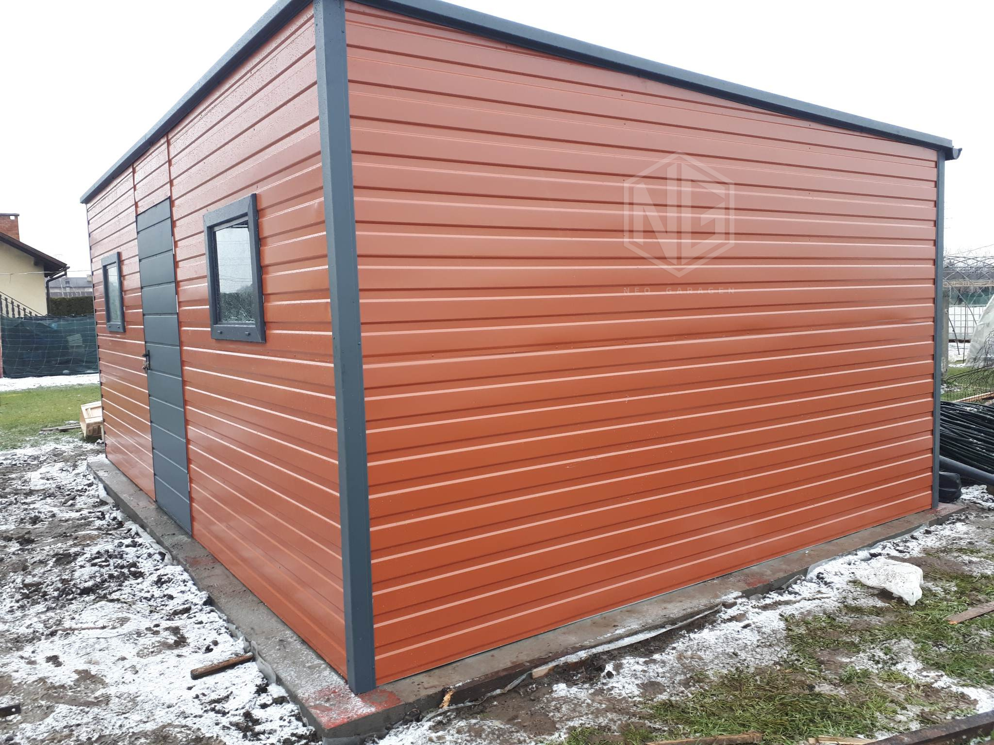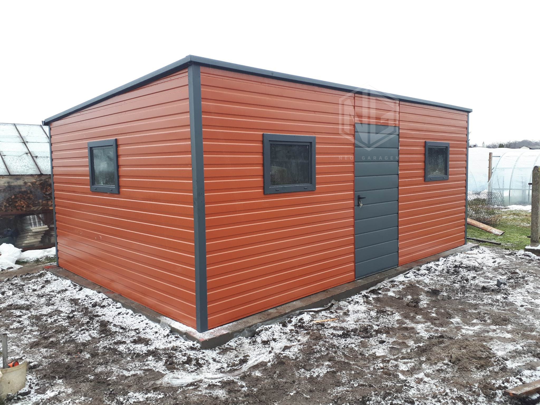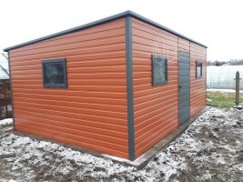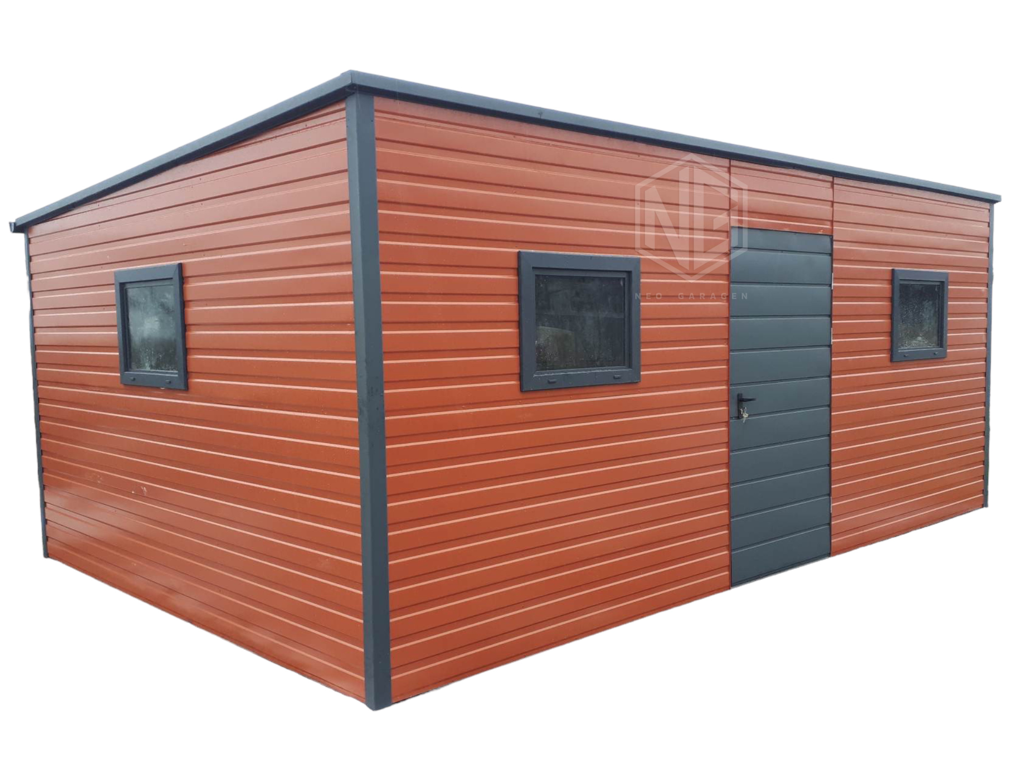 Gartenhaus 5,5x3m Tür + Anthrazit + 3x PVC Kippfenster – Braun – Pultdach GP94