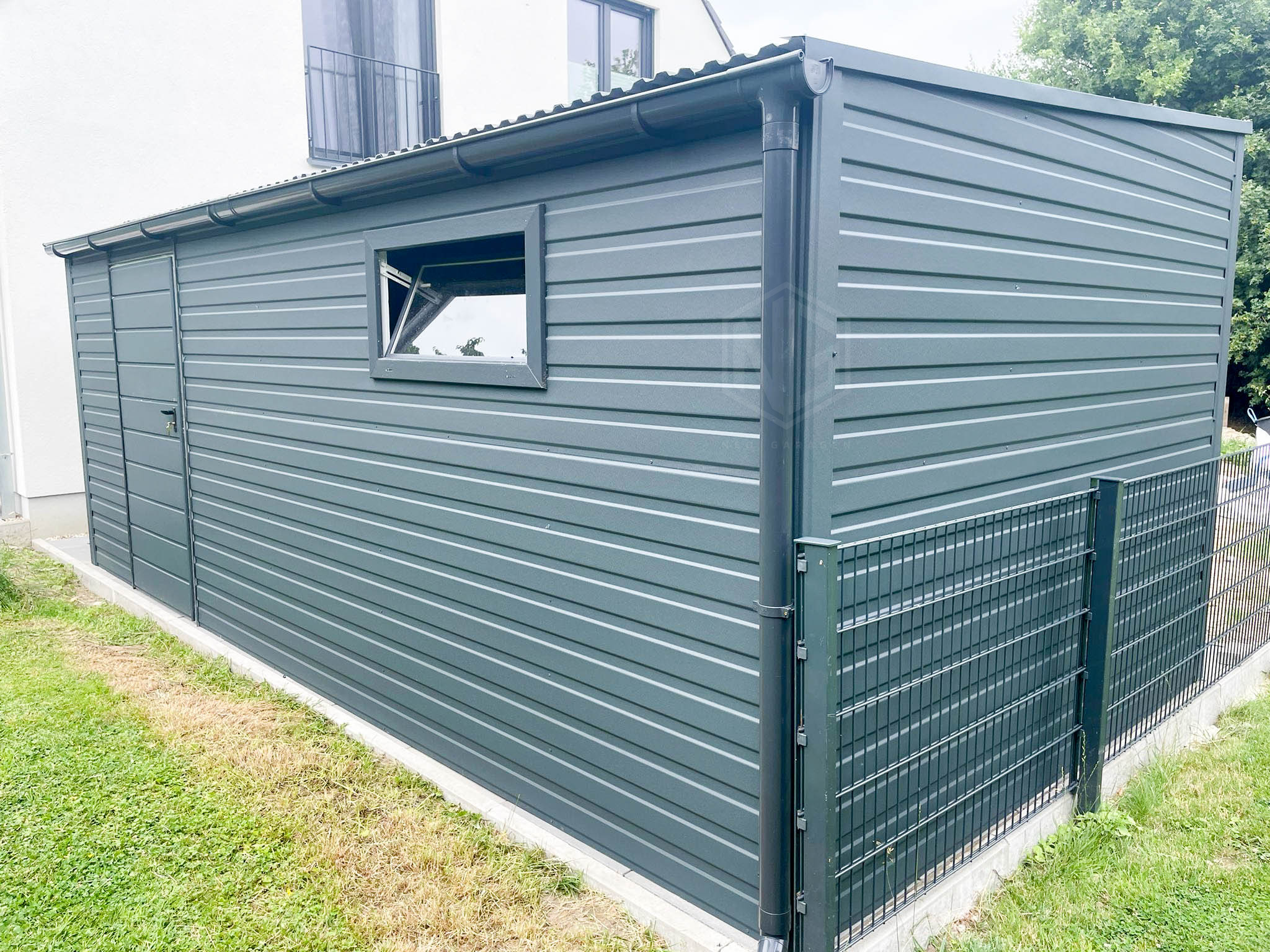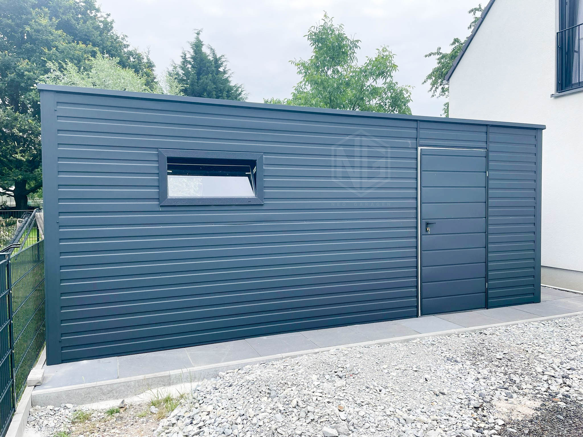 Gartenhaus 5x3m -2x Tür – 2x PVC Kippfenster – Anthrazit – Pultdach GP96