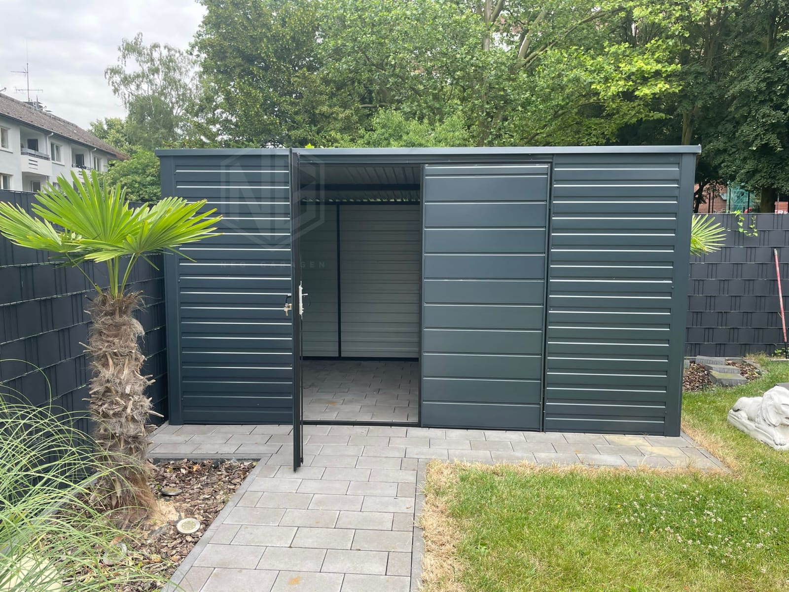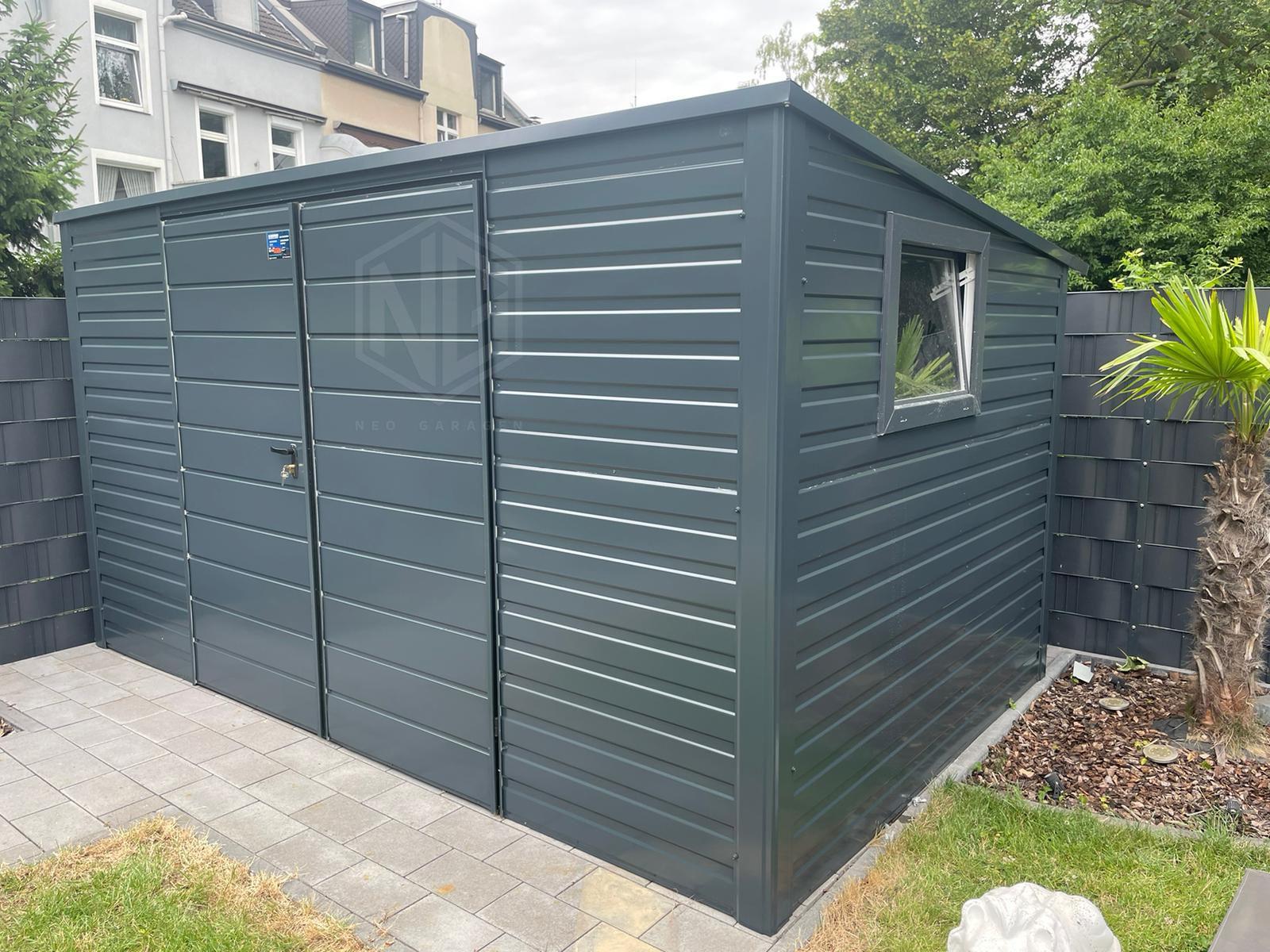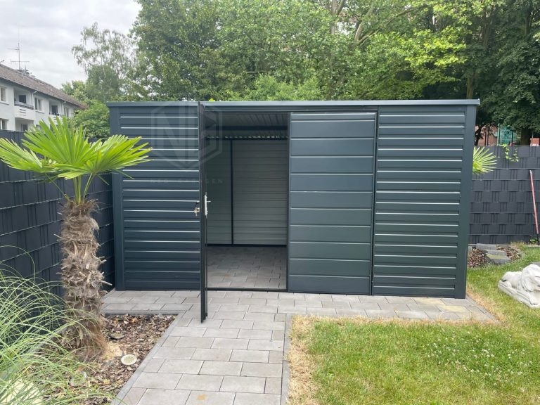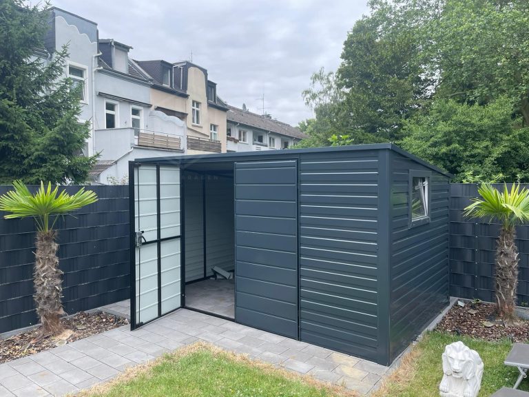 Gartenhaus 5x3m – Tür –  Anthrazit – 2x PVC Kippfenster – Weiß – Pultdach GP97
