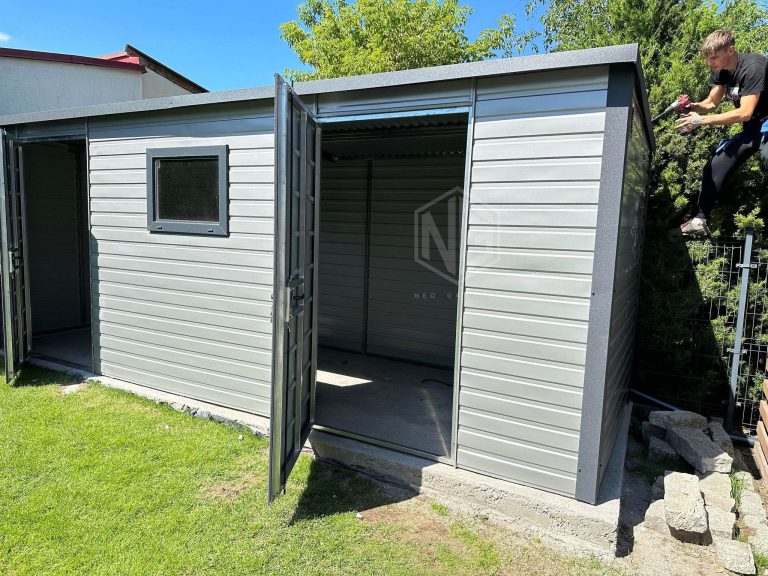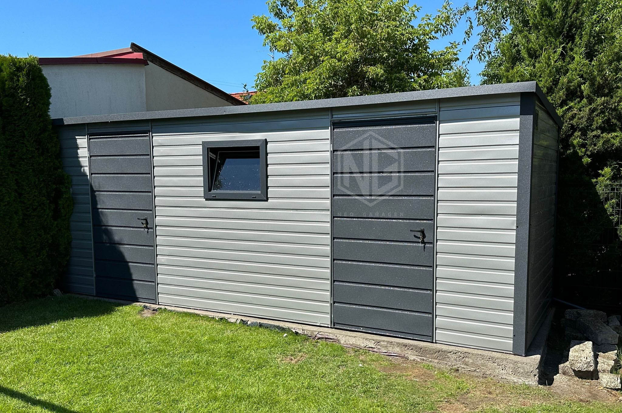 Gartenhaus 6x2m 2x PVC Kippfenster Anthrazit Silver Pultdach ID282