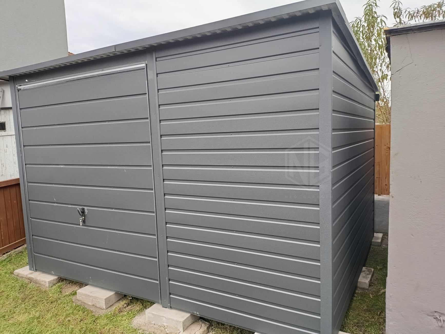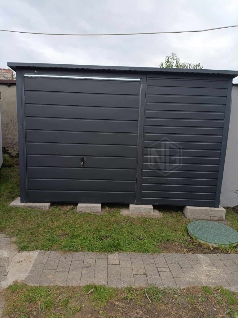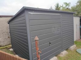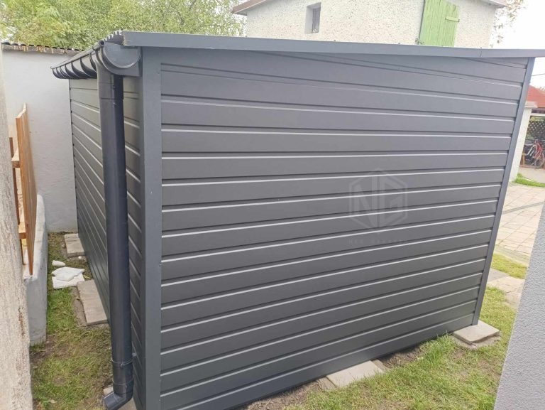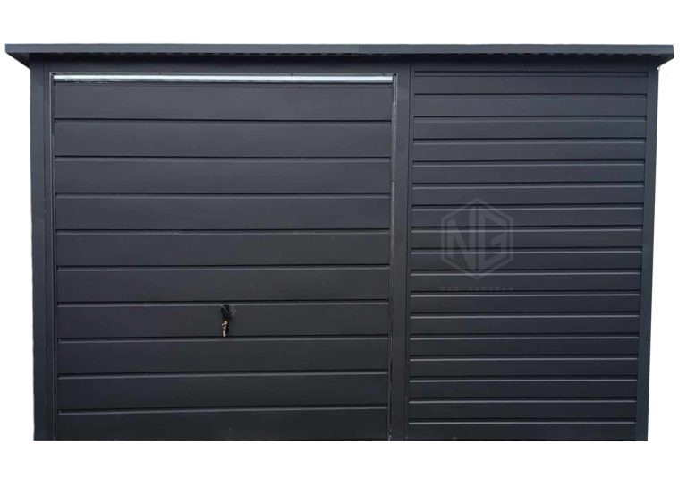 Gartenhaus – Garage – 3,5x3m Gartenschuppen – Schwingtor – Anthrazit – Dachrinnen – Flachdach ID764