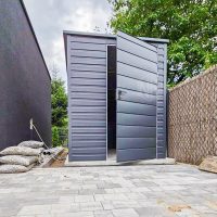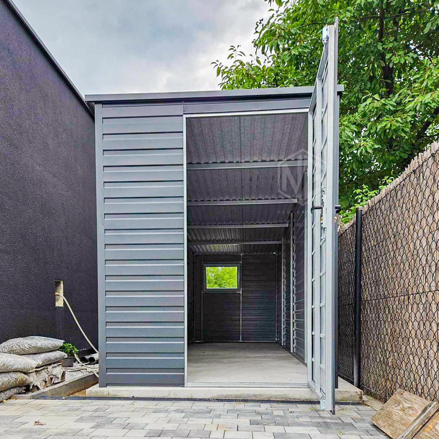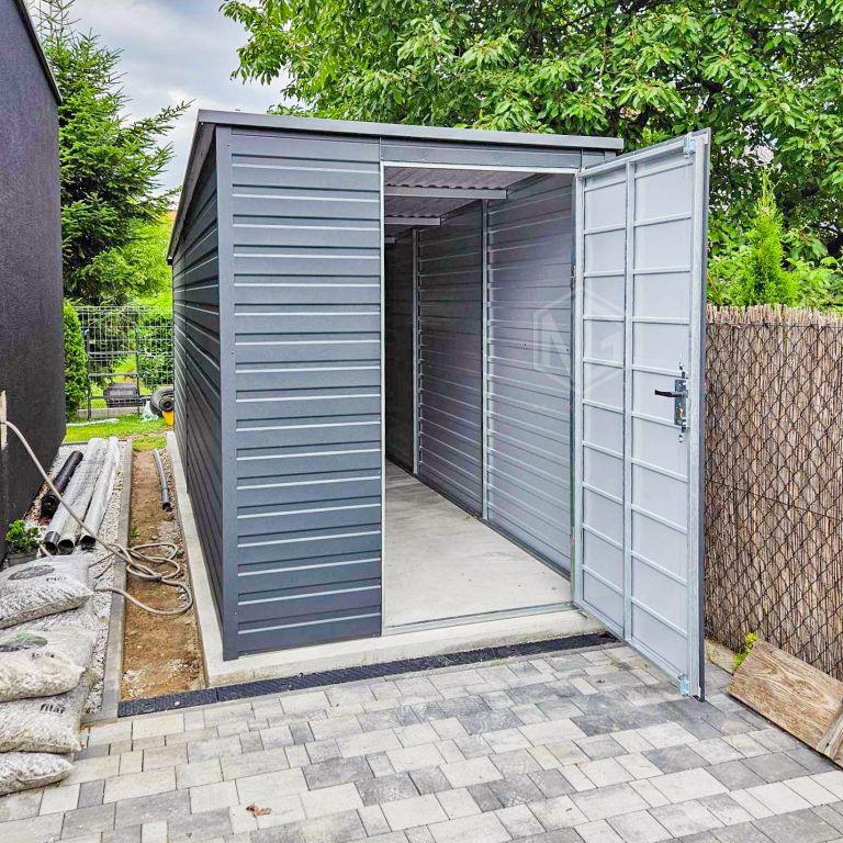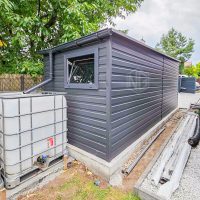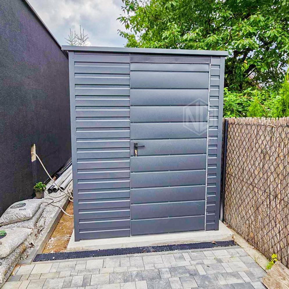 Gartenhaus – Gartenschuppen 1,8x4m – Tür – PVC Kippfenster – Anthrazit – Dachrinnen – Flachdach GP425
