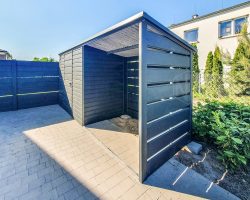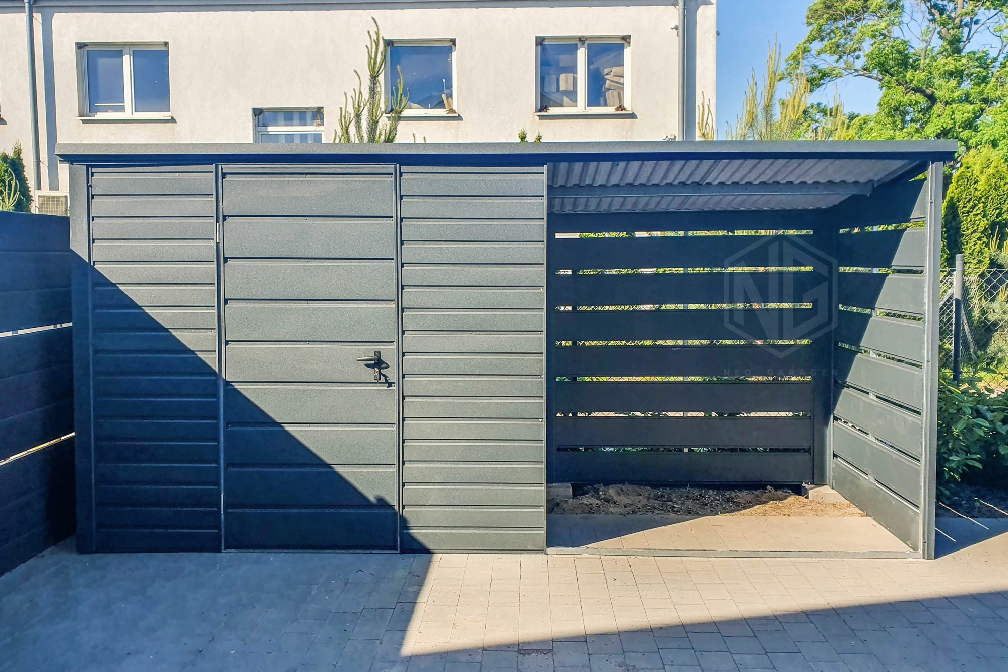 Gartenhaus – Gartenschuppen 2,5×1,5m + Überdachung 2,2m – Tür – Anthrazit – Flachdach ID644