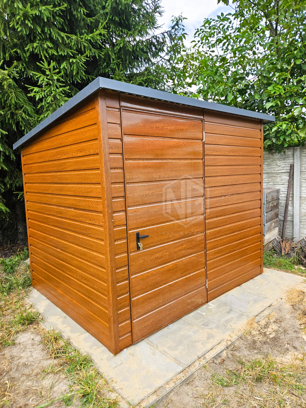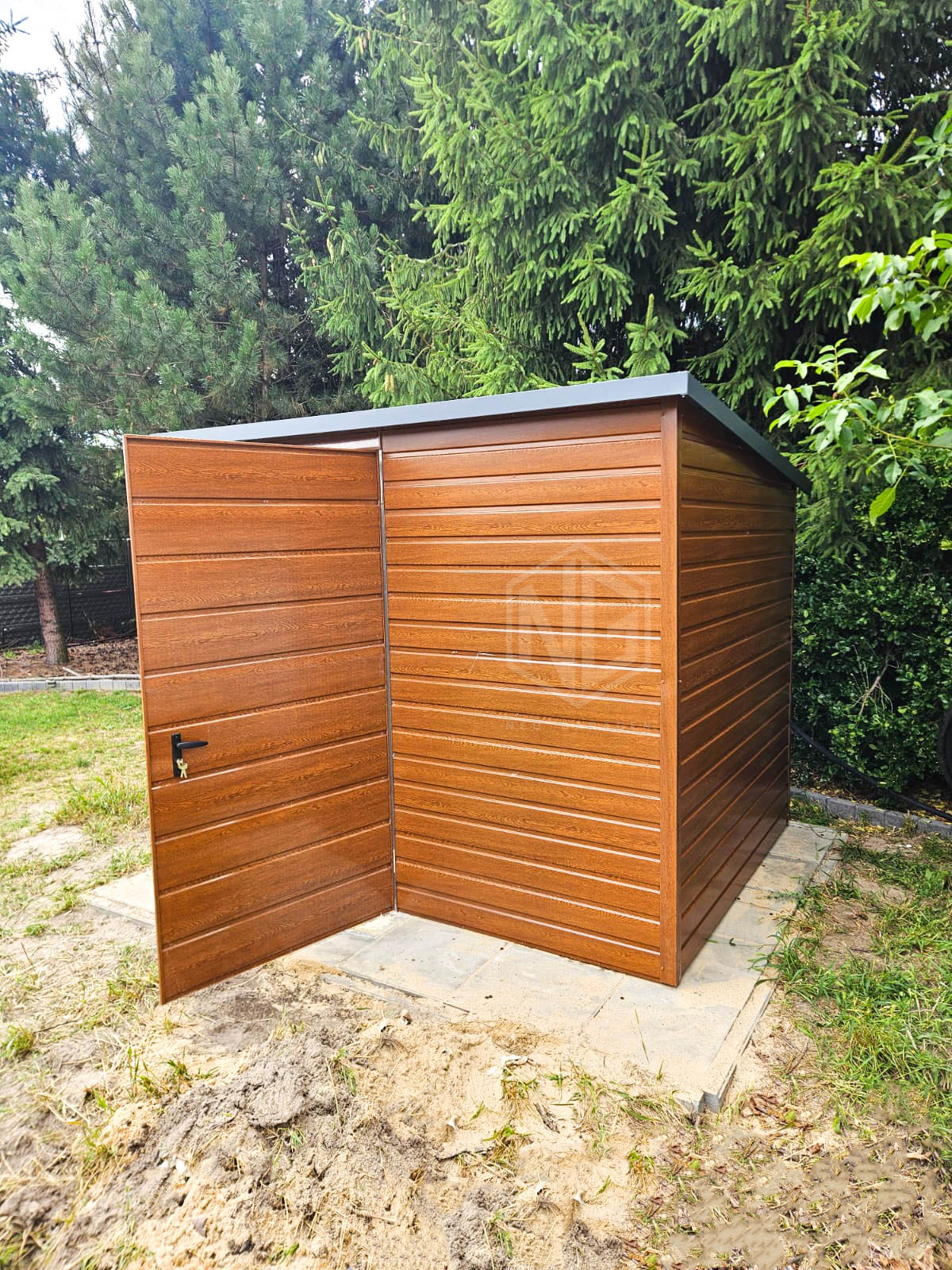 Gartenhaus – Gartenschuppen 2,5x2m – Tür – Helles Walnussholz – Holzoptik – Flachdach ID719