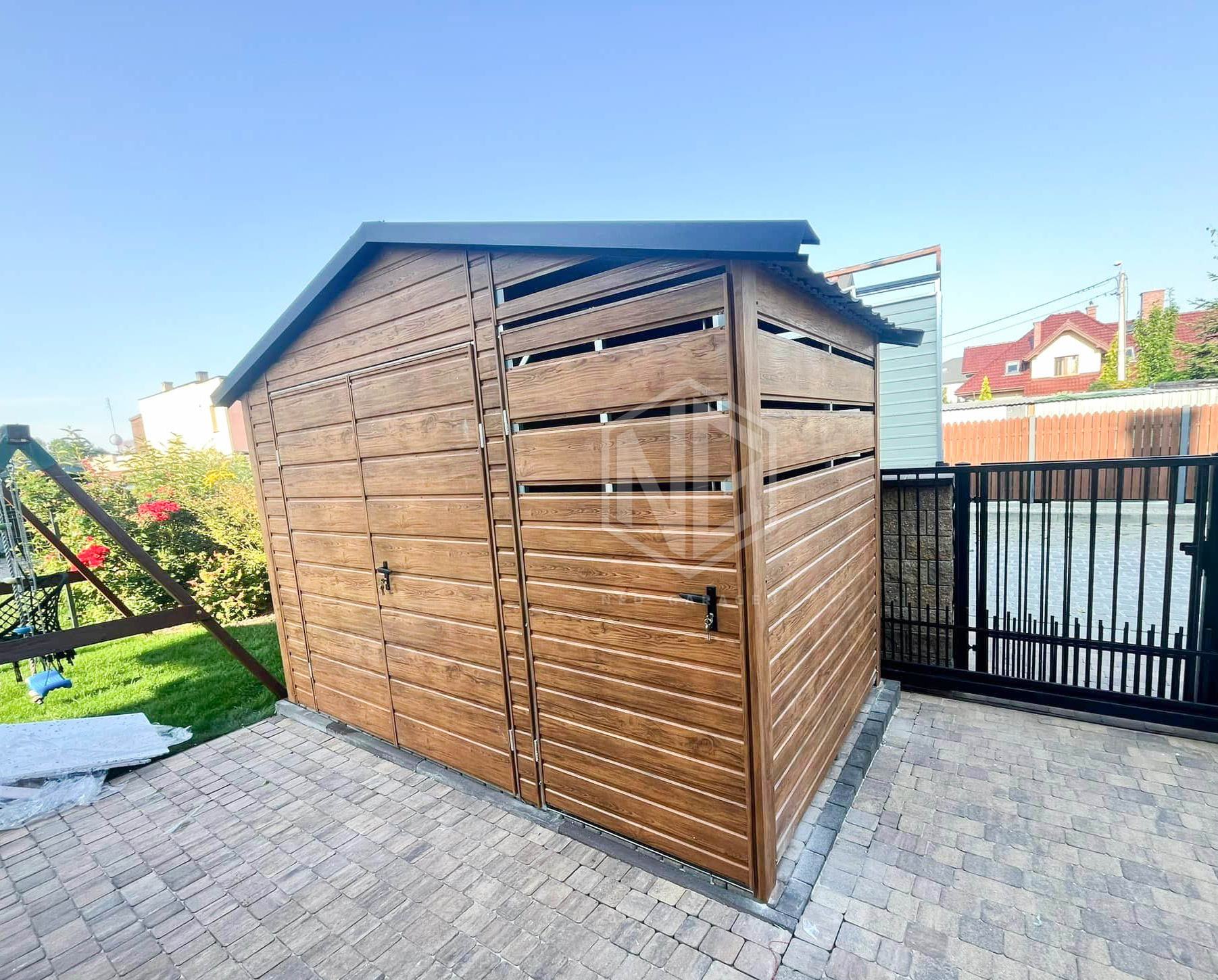 - Zweiflügeliges Tor 200×200 cm ( 2x100cm ) Horizontal Blech T17 Farbe: Helles Walnussholz