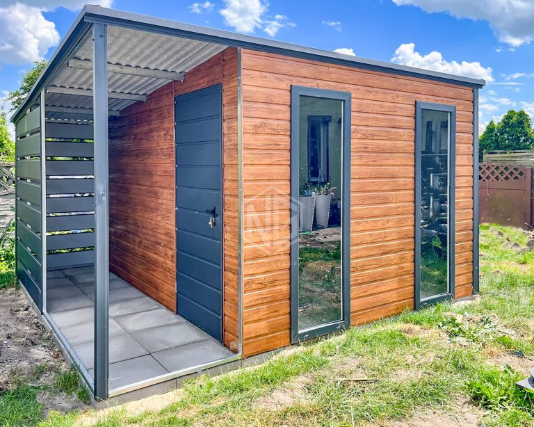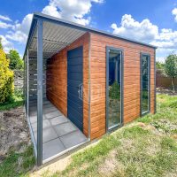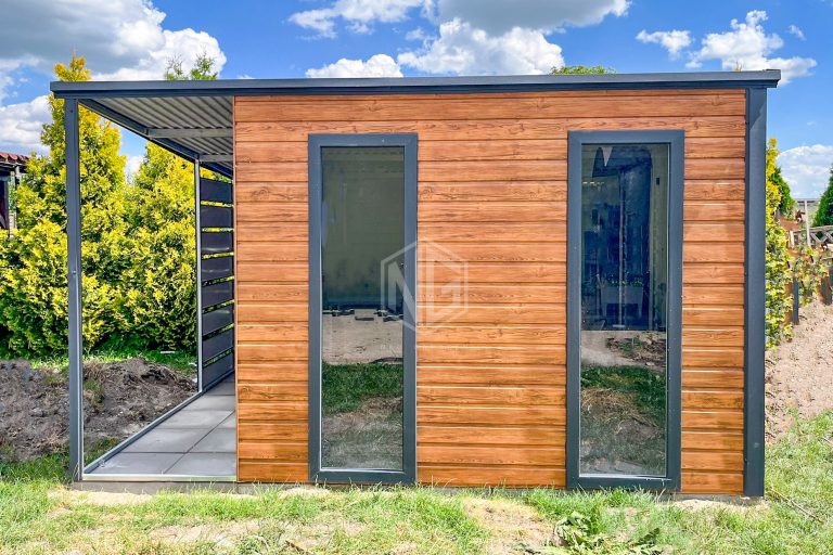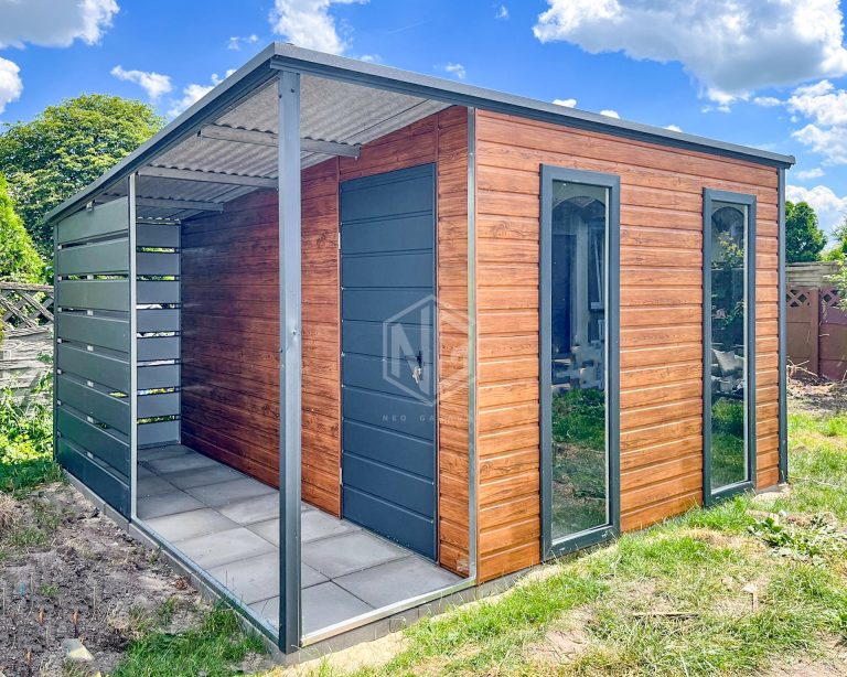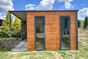 - Überdachung 1x3m Die Seiten- und Rückwand sind mit Paneelen verkleidet