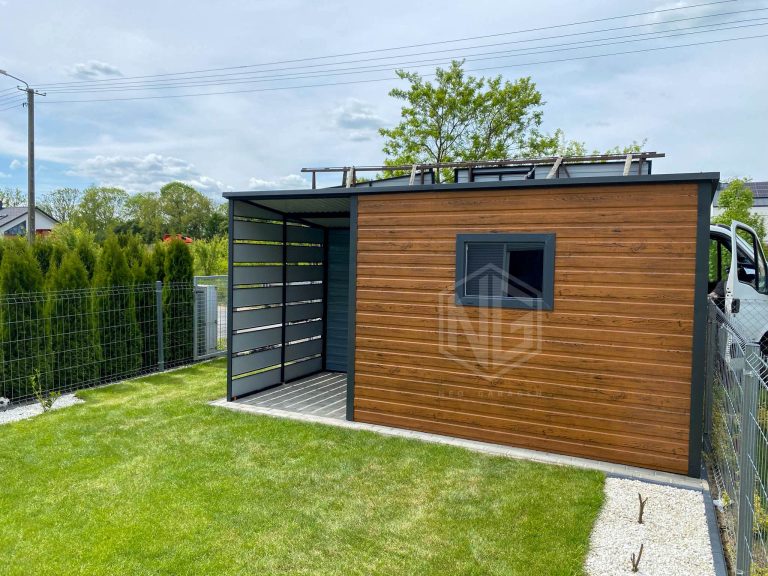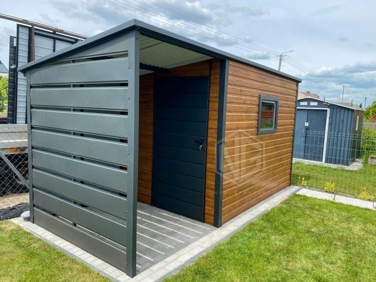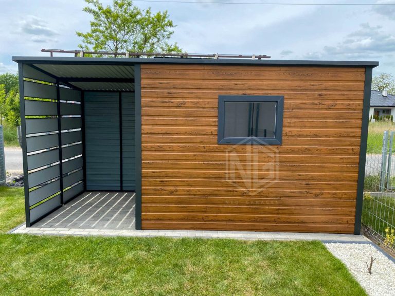 - Überdachung 1,5x2m – Die Seiten- und Rückwand sind mit Paneelen verkleidet