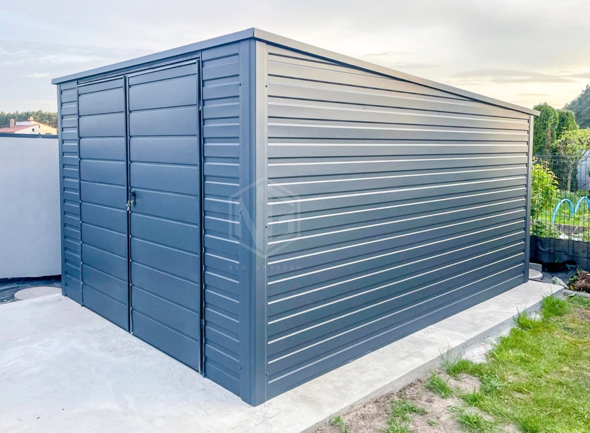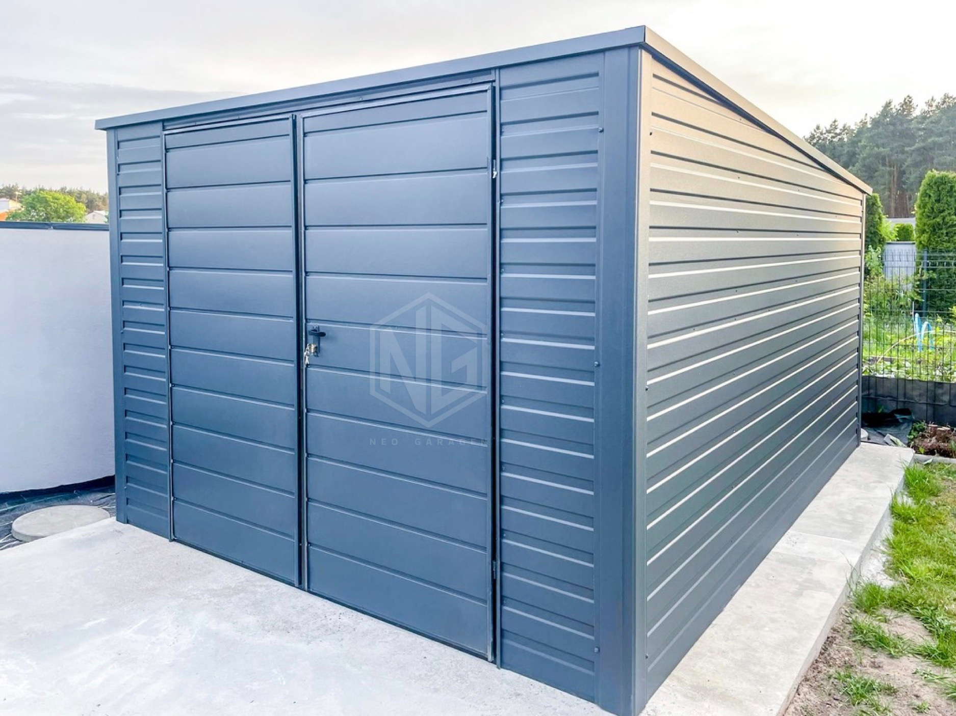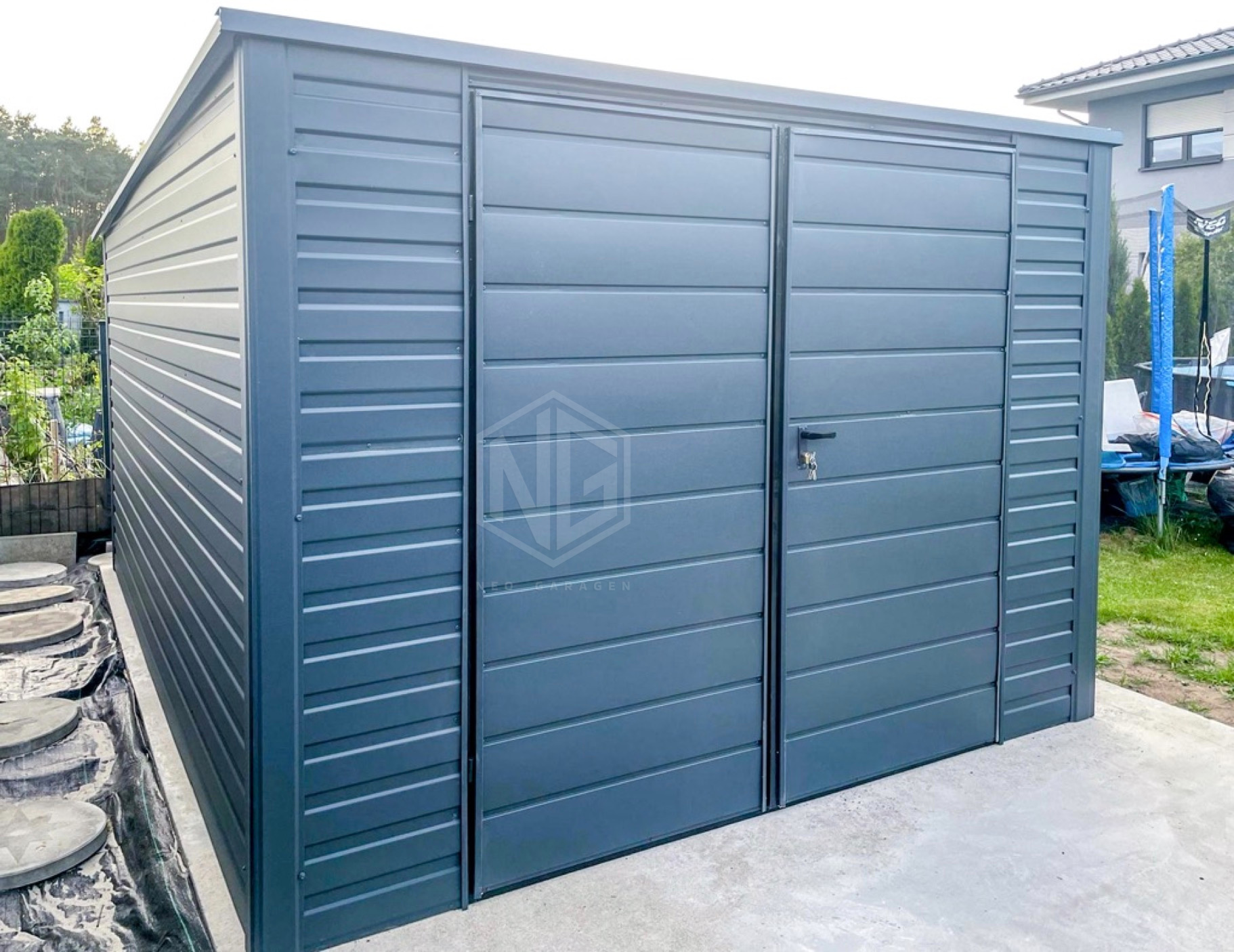 Gartenhaus – Gartenschuppen 3×3,5m – Zweiflügeliges Tor – Anthrazit – Flachdach GP483