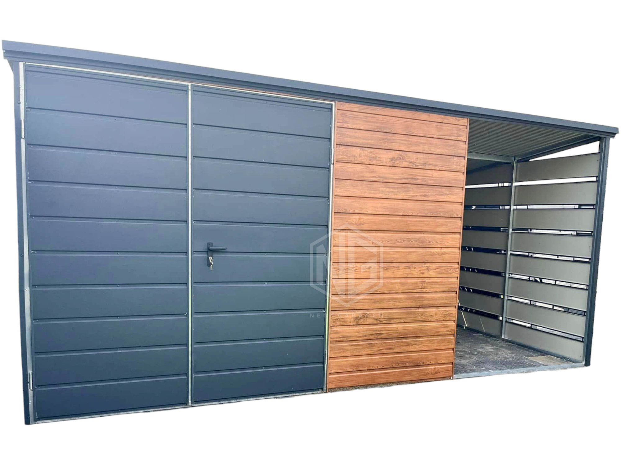 - Zweiflügeliges Tor 200x200cm ( 2x100cm ) Horizontal Blech T17 Farbe: Anthrazit Matte 7016