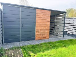 - Überdachung 1,5x3m Die Seiten- und Rückwand sind mit Paneelen verkleidet Farbe: Anthrazit Matte 7016
