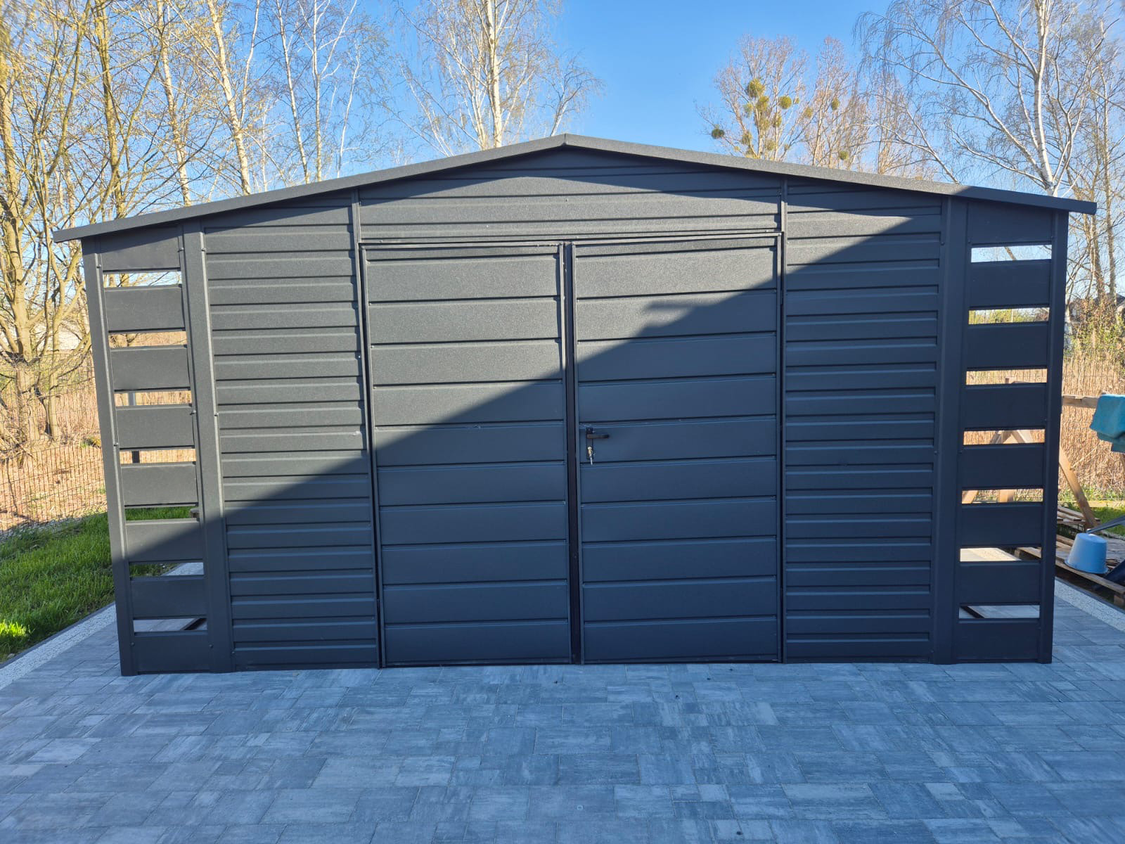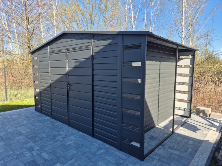 - 2x Überdachung : 0,5×3 m Die Rück- und Vorderwand sind mit Paneelen verkleidet. Farbe: Anthrazit Matte 7016