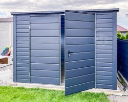 - Zweiflügeliges Tor 200×200 cm ( 2x100cm ) Horizontal Blech T17 Farbe: Anthrazit Matte 7016