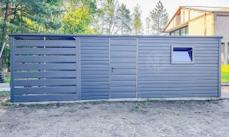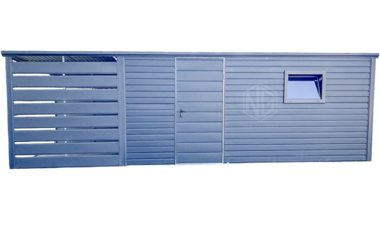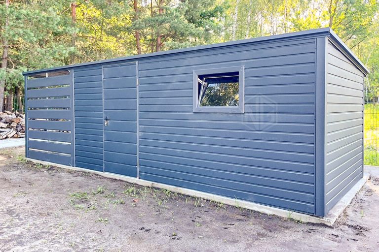Gartenhaus – Gartenschuppen 4,5×2,5m + Überdachung 2m – Tür – PVC Kippfenster – Anthrazit – Flachdach ID803