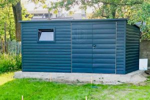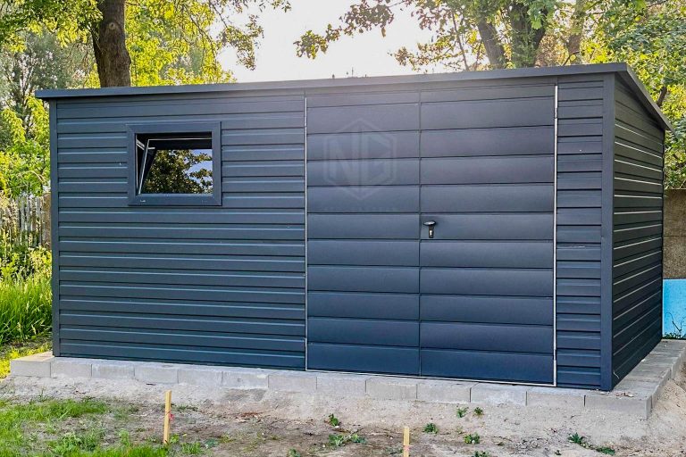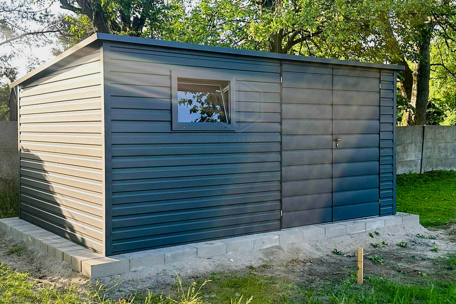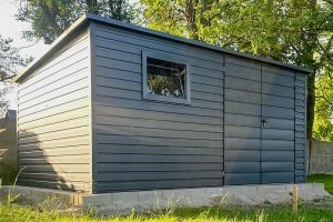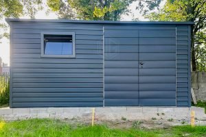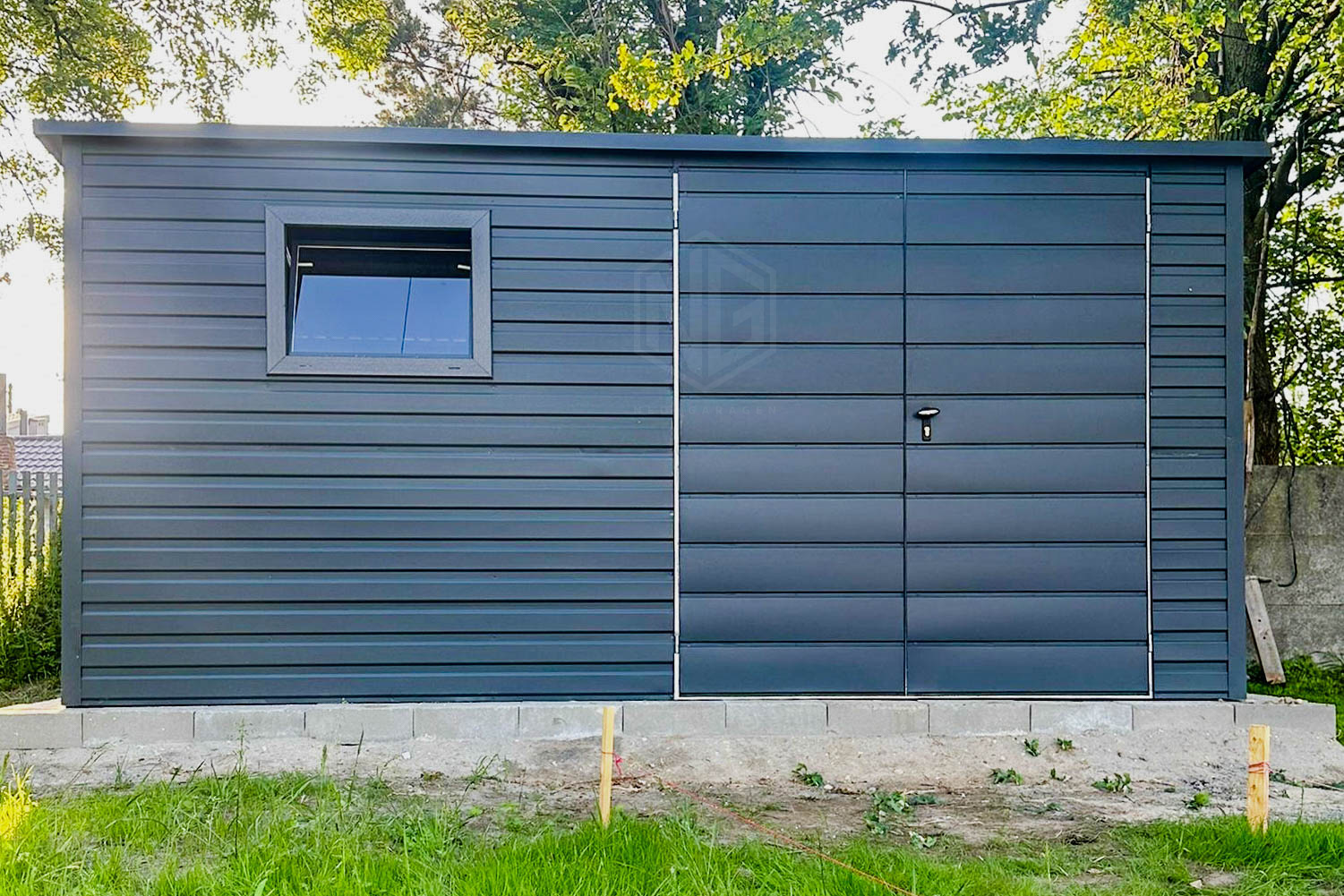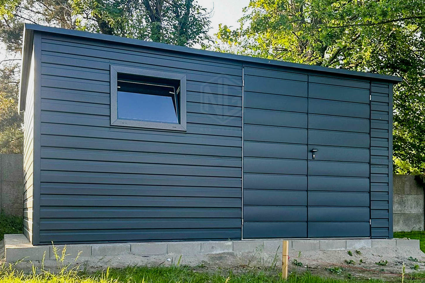 Gartenhaus – Gartenschuppen 4,5×2,5m – Zweiflügeliges Tor – PVC Kippfenster – Anthrazit – Flachdach ID616