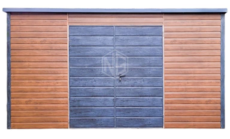 • Zweiflügeliges Tor 180x200cm (2×90 cm) Horizontal Blech T17 Farbe: Norwegische Kiefer