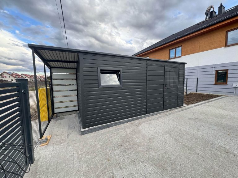 - Überdachung 1x2m Die Rückwand sind mit Paneelen verkleidet. Farbe: Anthrazit Matte 7016