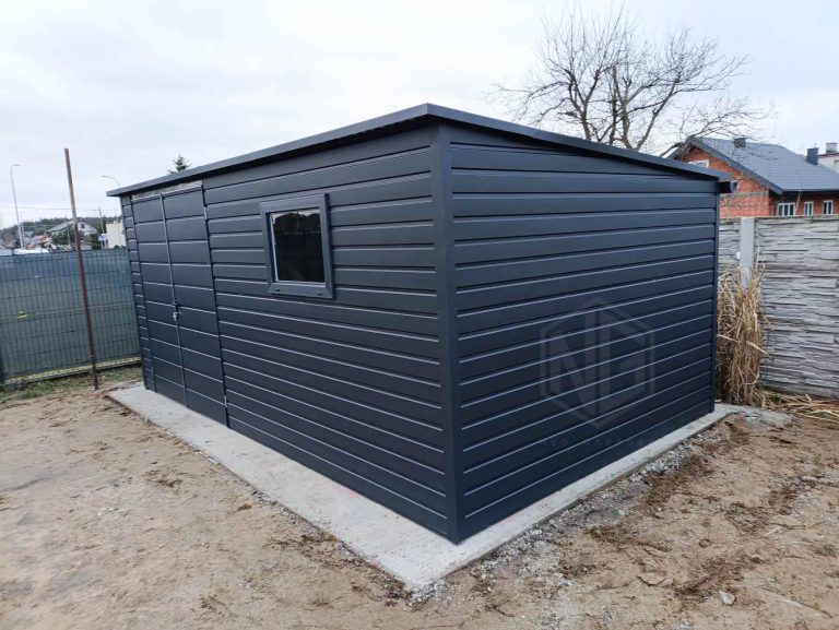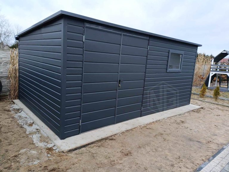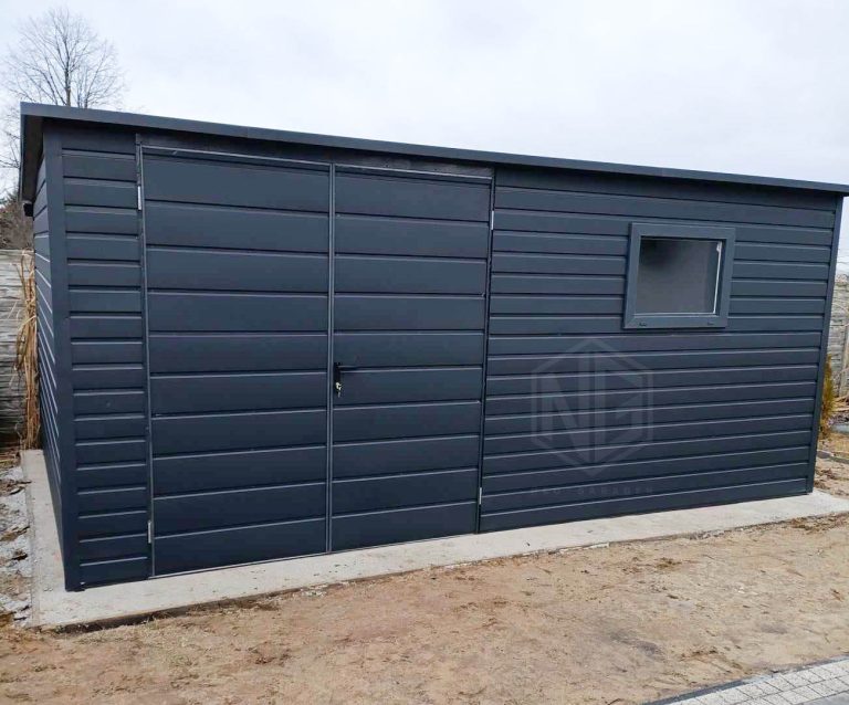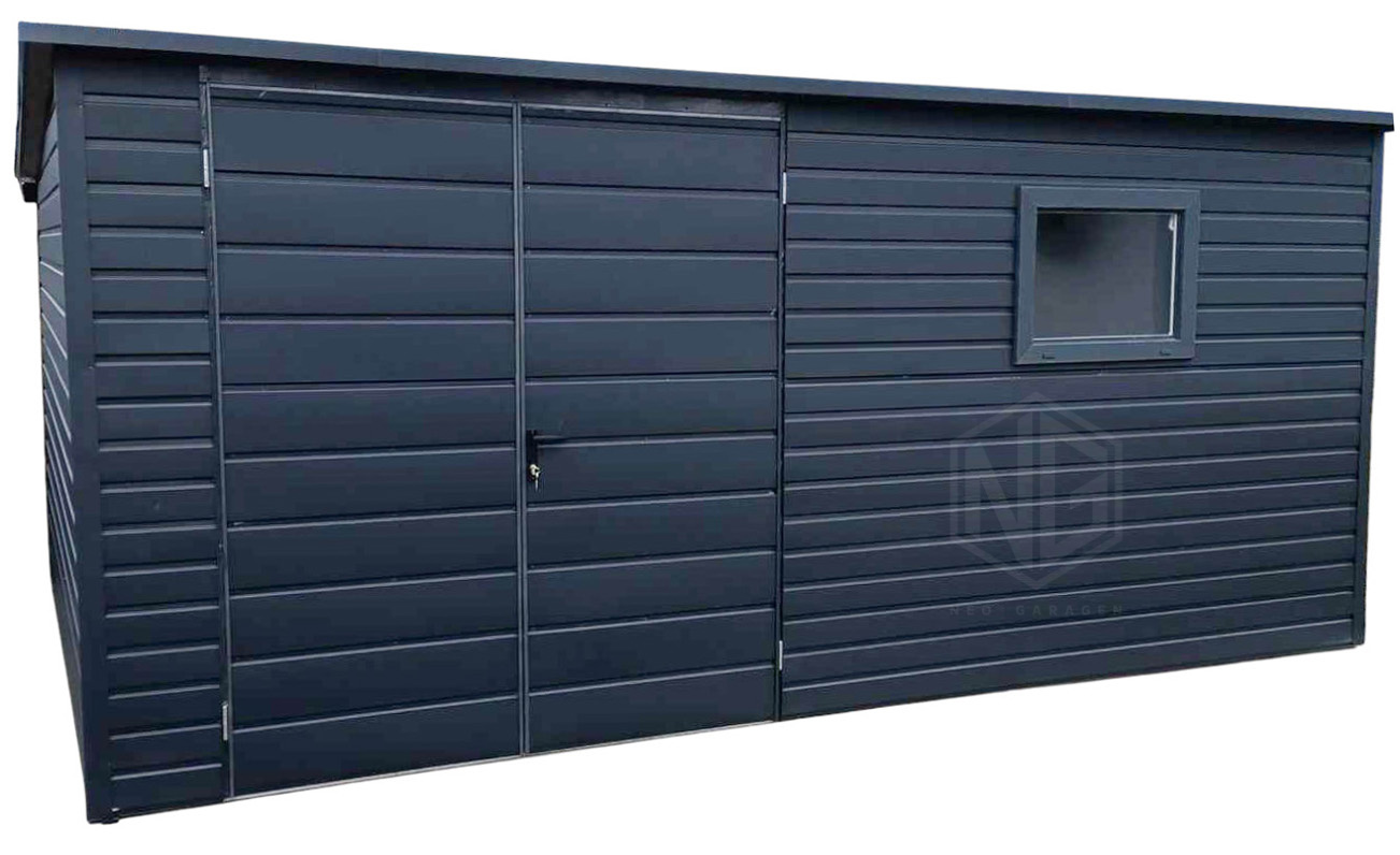 Gartenhaus – Gartenschuppen 5x3m – Zweiflügeliges Tor – PVC Kippfenster – Anthrazit – Flachdach ID896