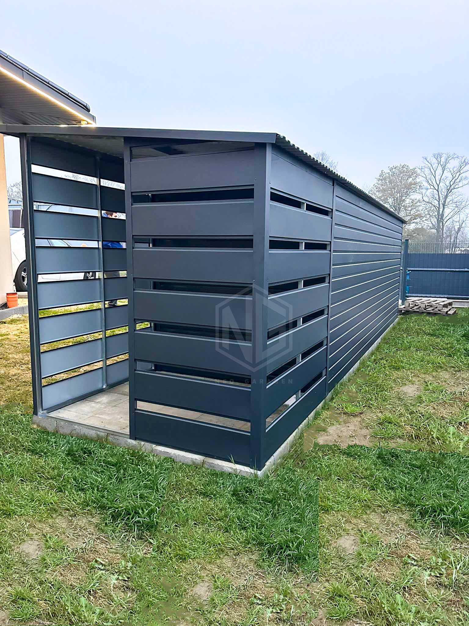 - Überdachung 1,5x2m mit Paneelen verkleidet Farbe: Anthrazit Matte 7016