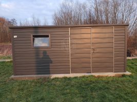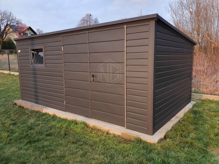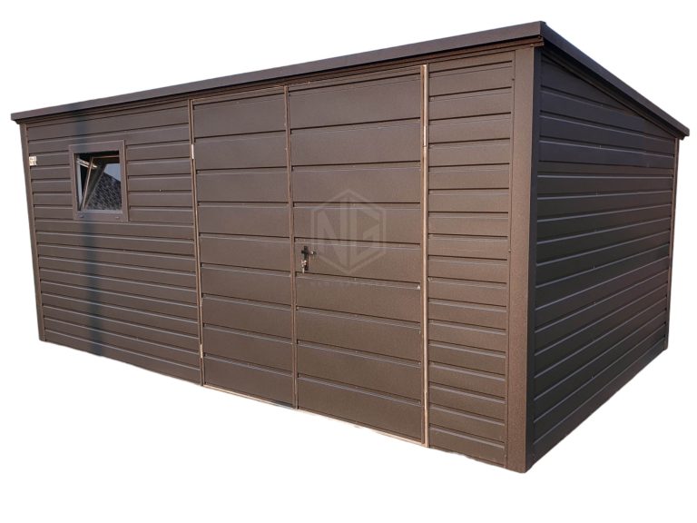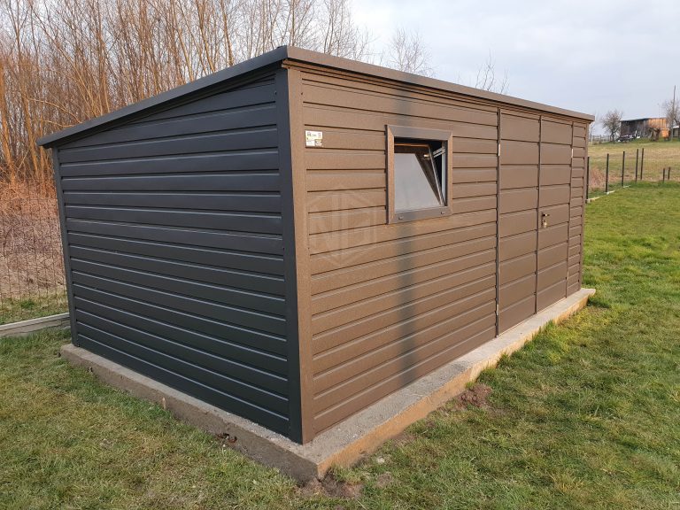 Gartenhaus – Schuppen 4,5x3m – Zweiflügeliges Tor – PVC Kippfenster – Anthrazit – Verzinkte Konstruktion – Flachdach ID539