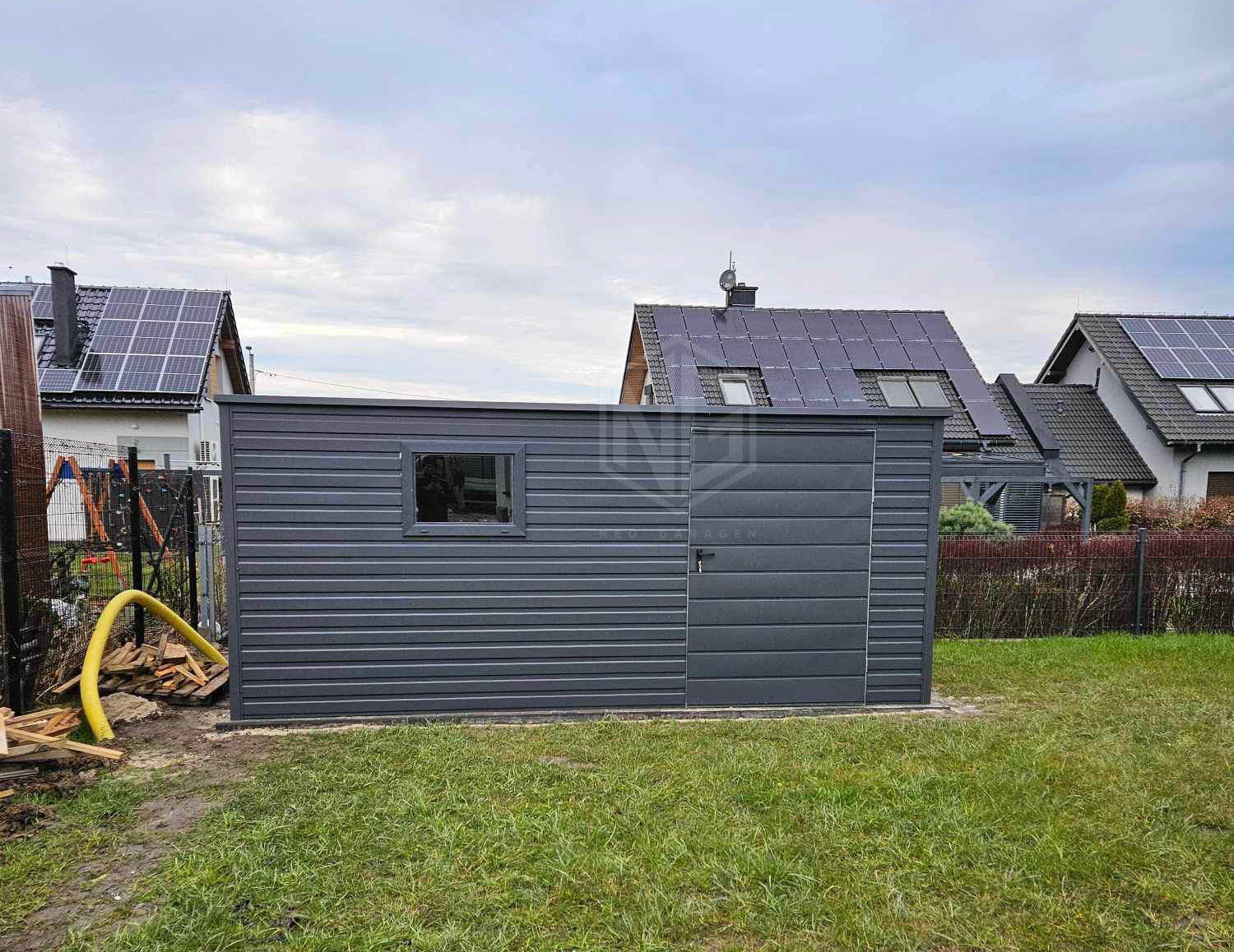 Gartenhaus – Schuppen 6x3m Tür – PVC Kippfenster – Anthrazit – Flachdach GP352