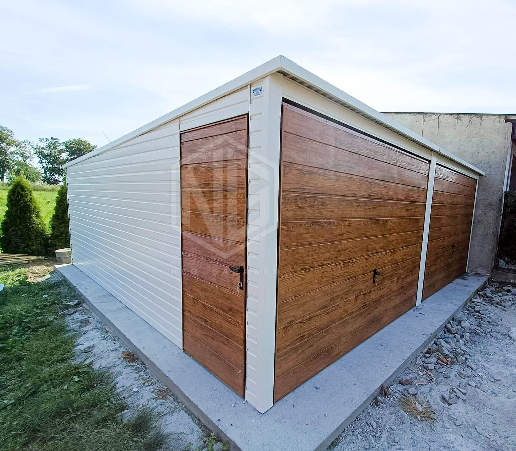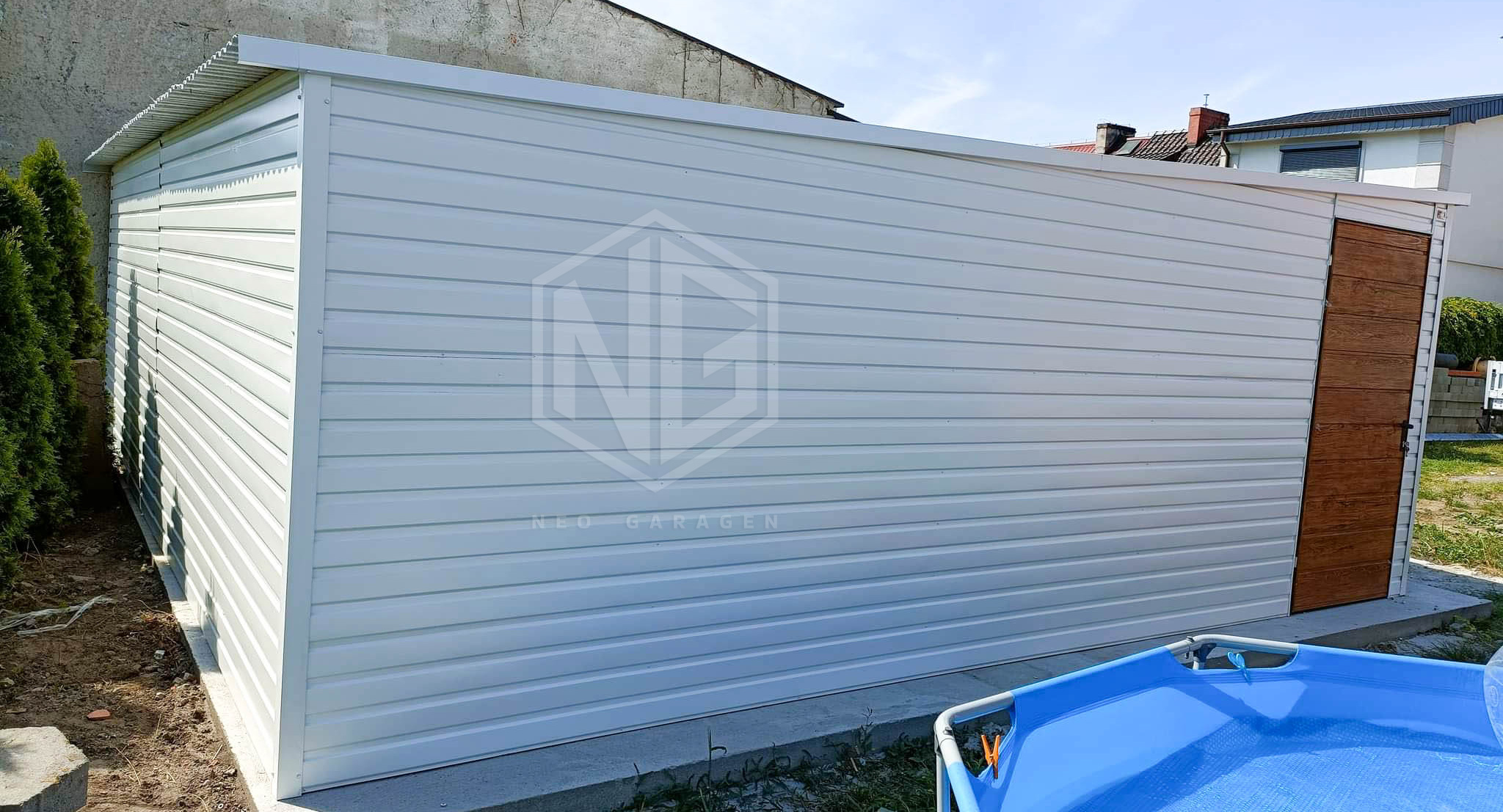 - Dach: Trapezblech T14 Farbe:Weiß Ral 9010