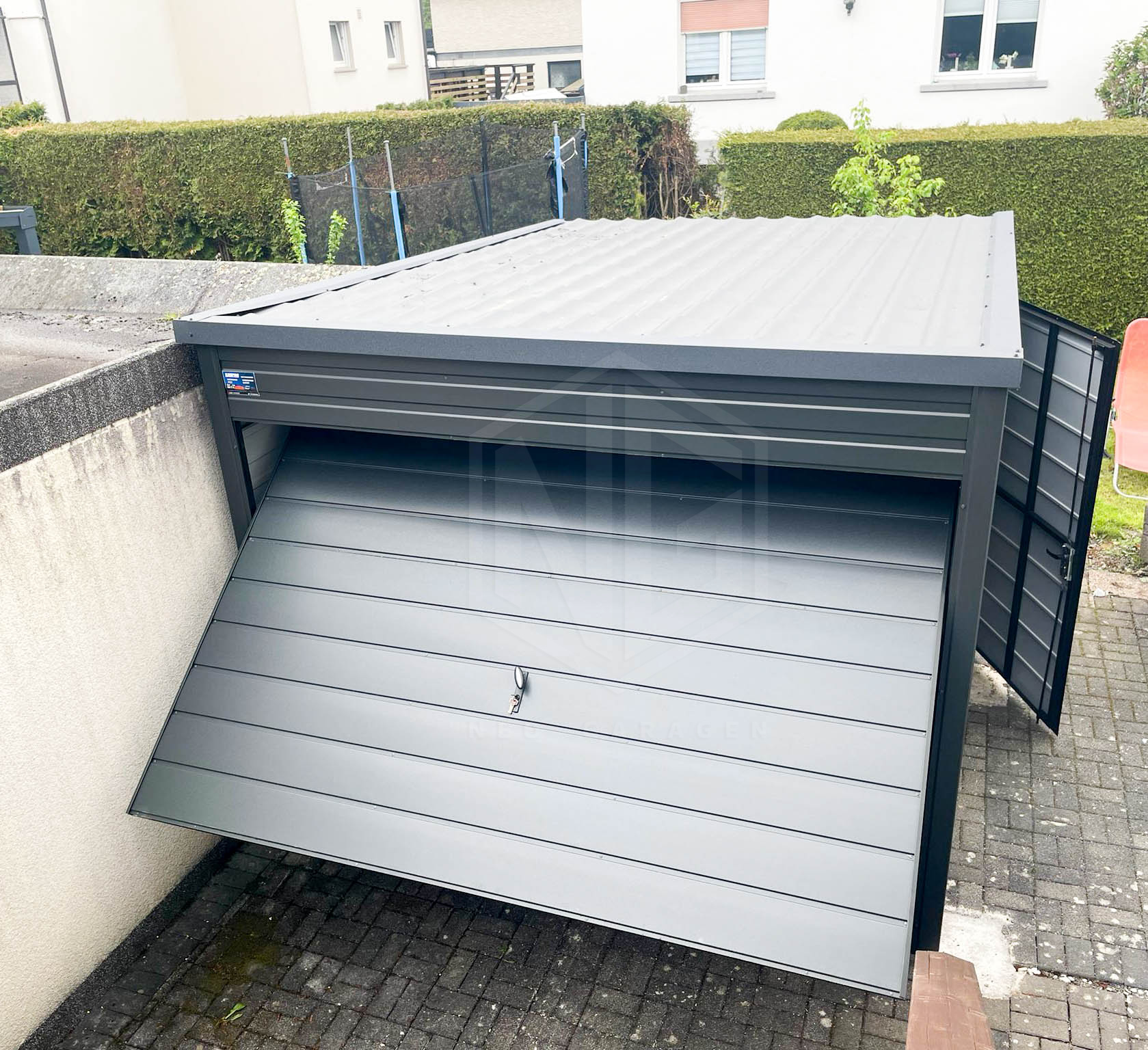 Blechgarage 3x4m Schwingtor Anthrazit Flachdach GP100