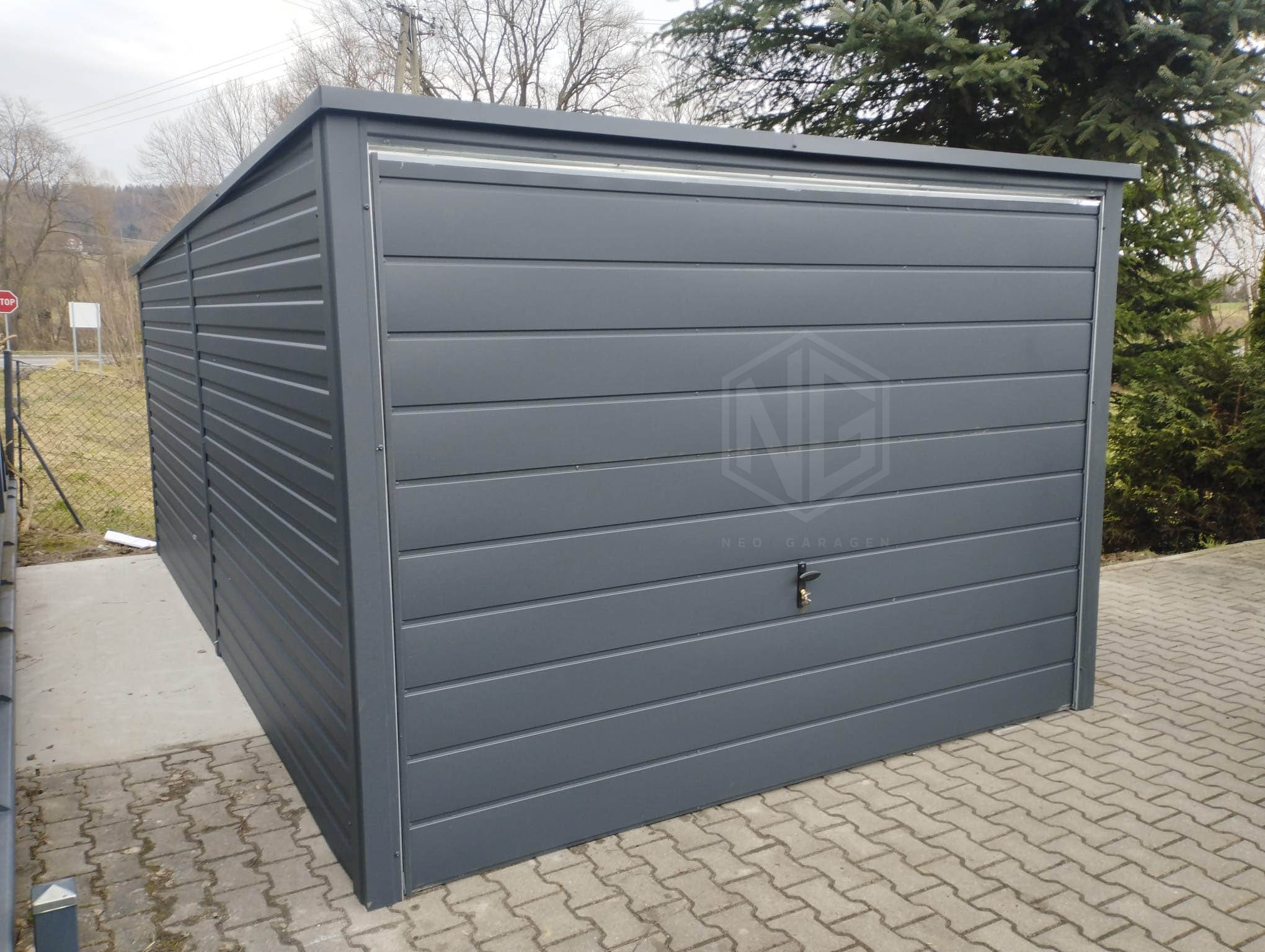 Blechgarage 3x5m – Schwingtor – Anthrazit – Flachdach GP277