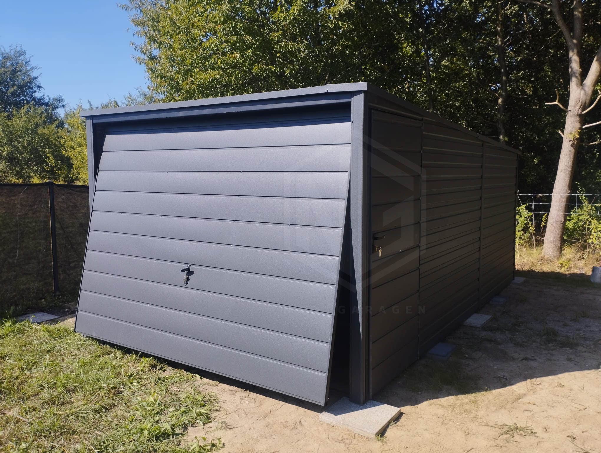 Blechgarage 3x5m Schwingtor + Zusätzliche Tür Anthrazit GP212