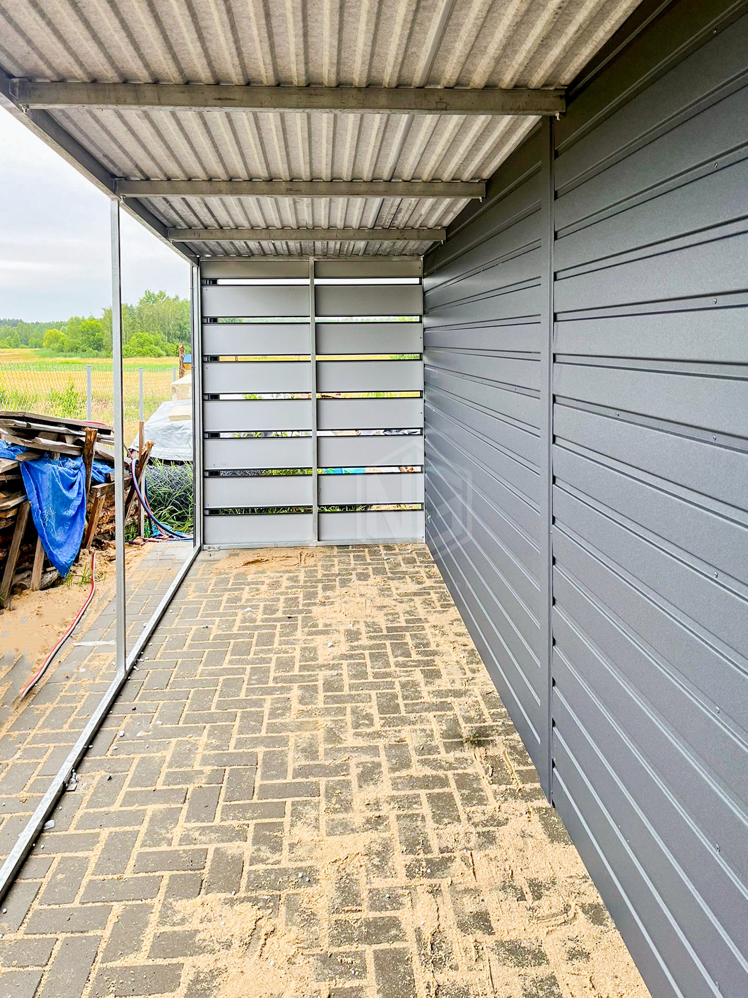 • Überdachung 1,2x6m Die Rück- und Vorderwand sind mit Paneelen verkleidetkolor Farbe: Anthrazit Matte 7016