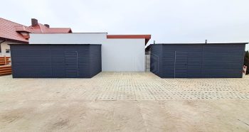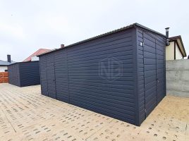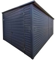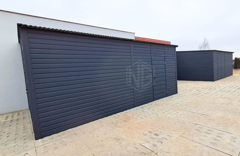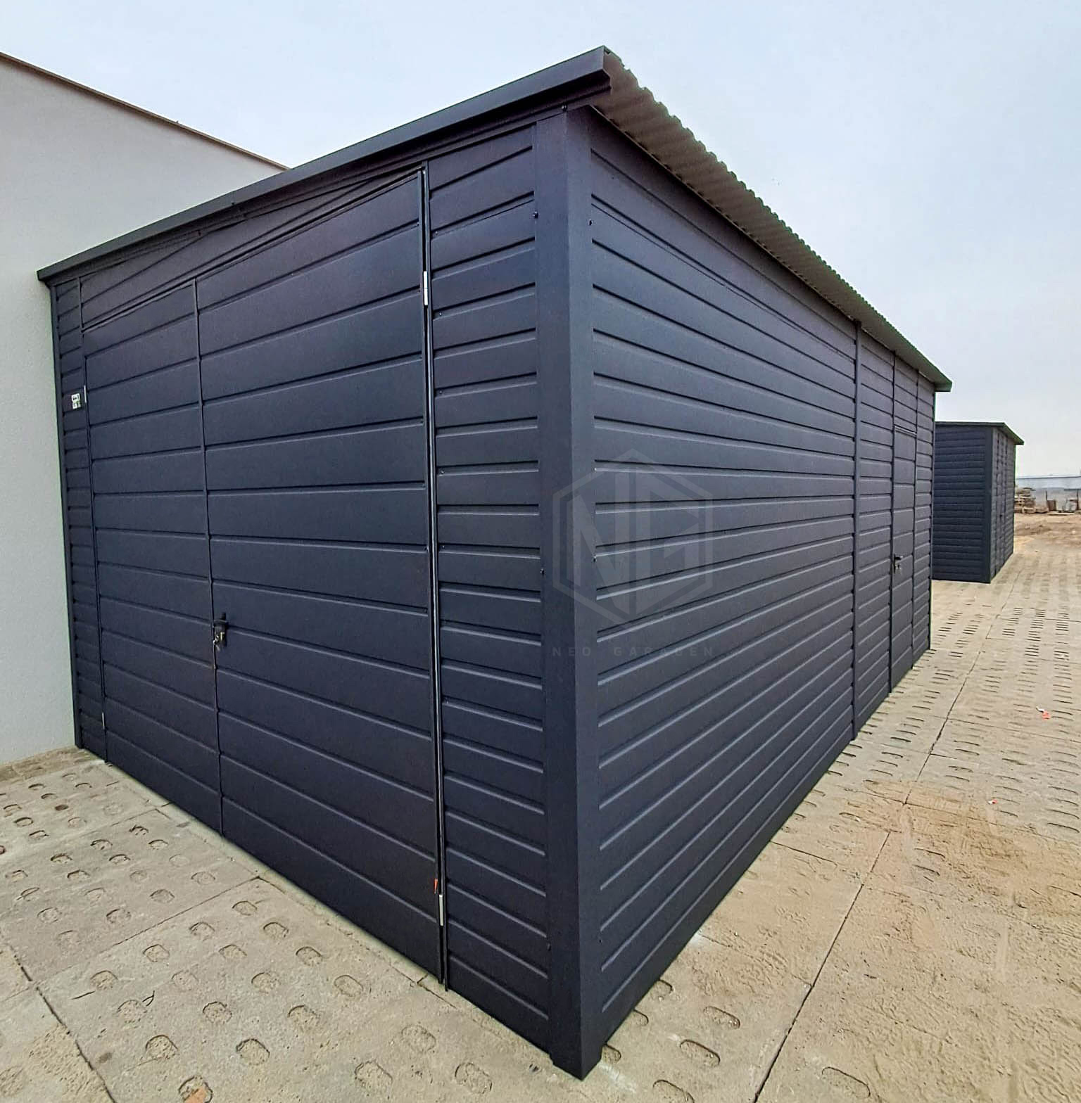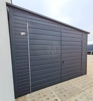 Blechgarage 3x7m – Zweiflügeliges Tor – Tür – Anthrazit – Dach: Neigung nach rechts ID966