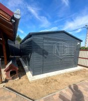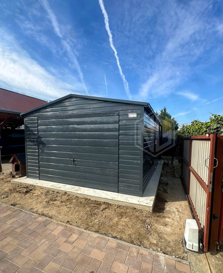 Blechgarage 4,5x6m Schwingtor – anthrazit – Dachrinnen – Satteldach ID767