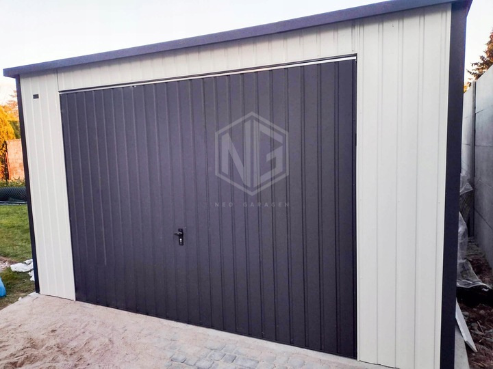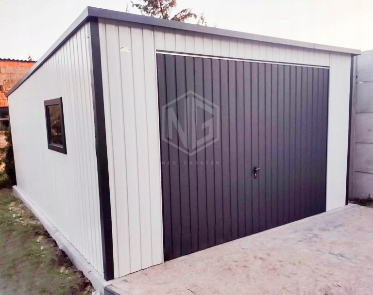 Blechgarage 4x5m Vertikal Blech Schwingtor PVC Kippfenster Weiß Anthrazit ID185