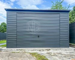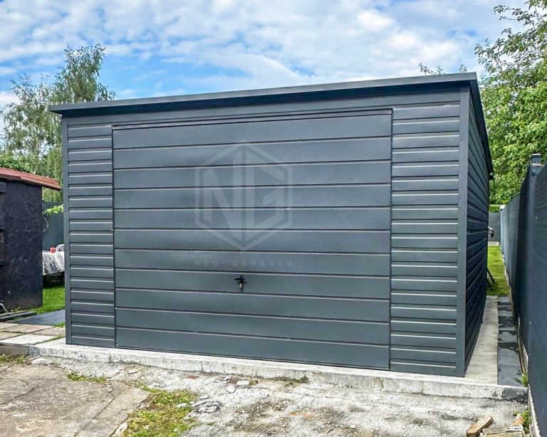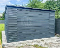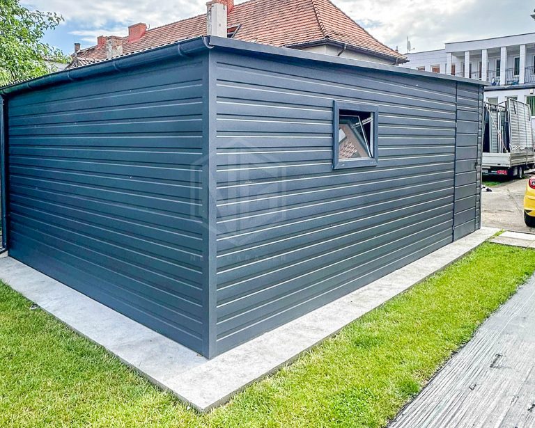 Blechgarage 4x6m – Schwingtor – Tür – PVC Kippfenster – Dachrinnen – Anthrazit – Flachdach ID613