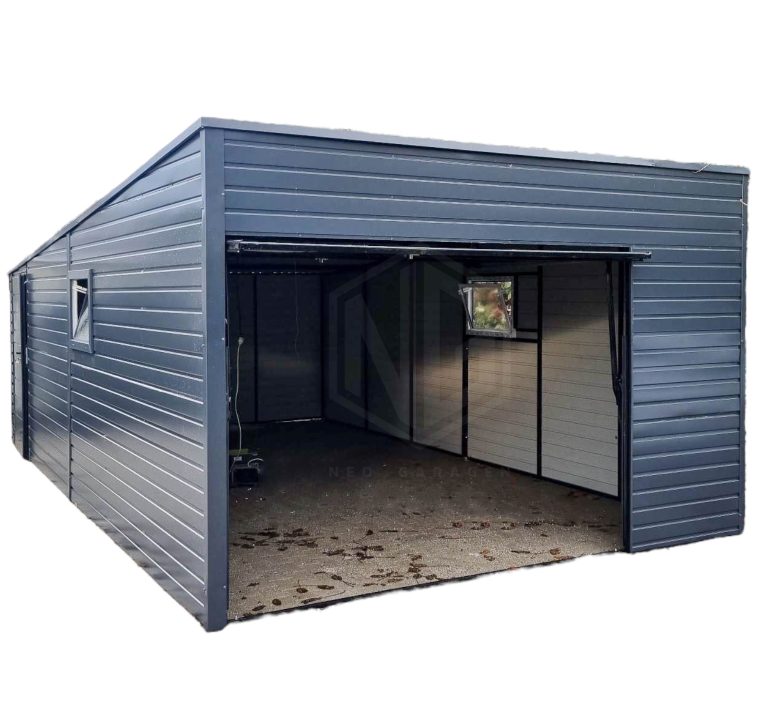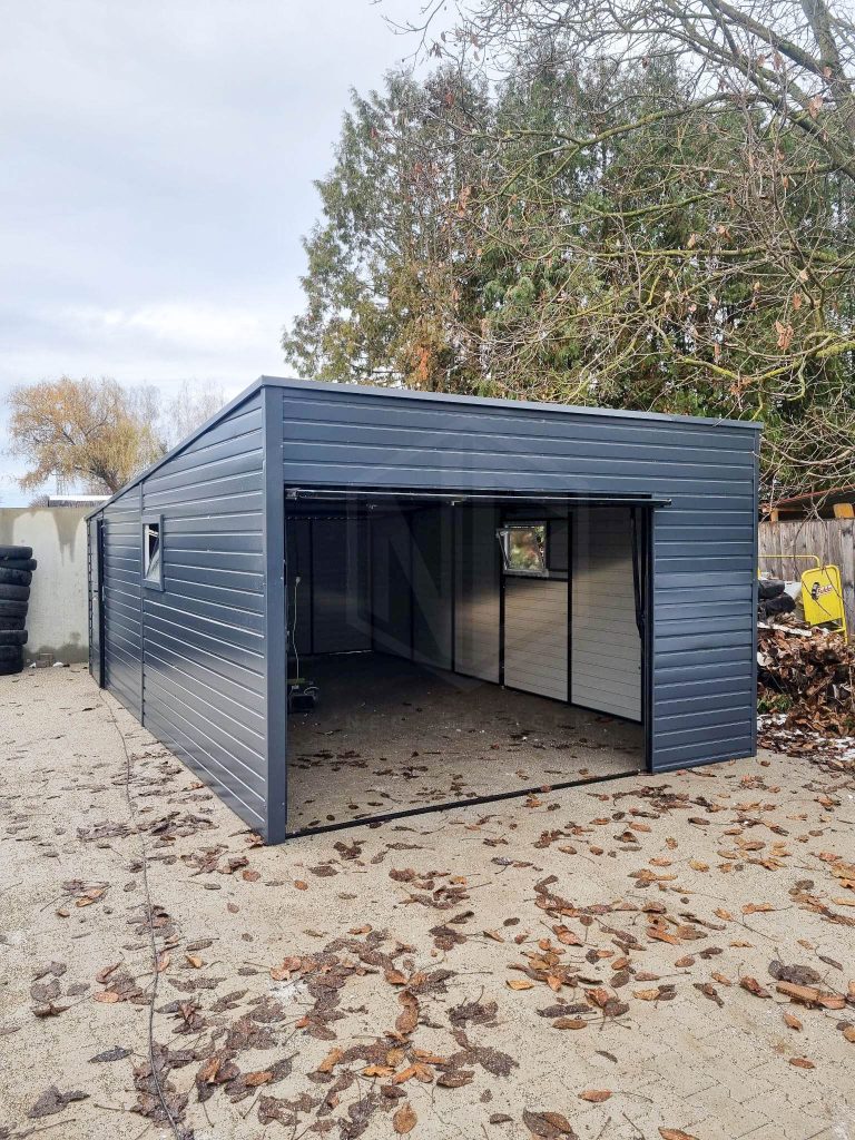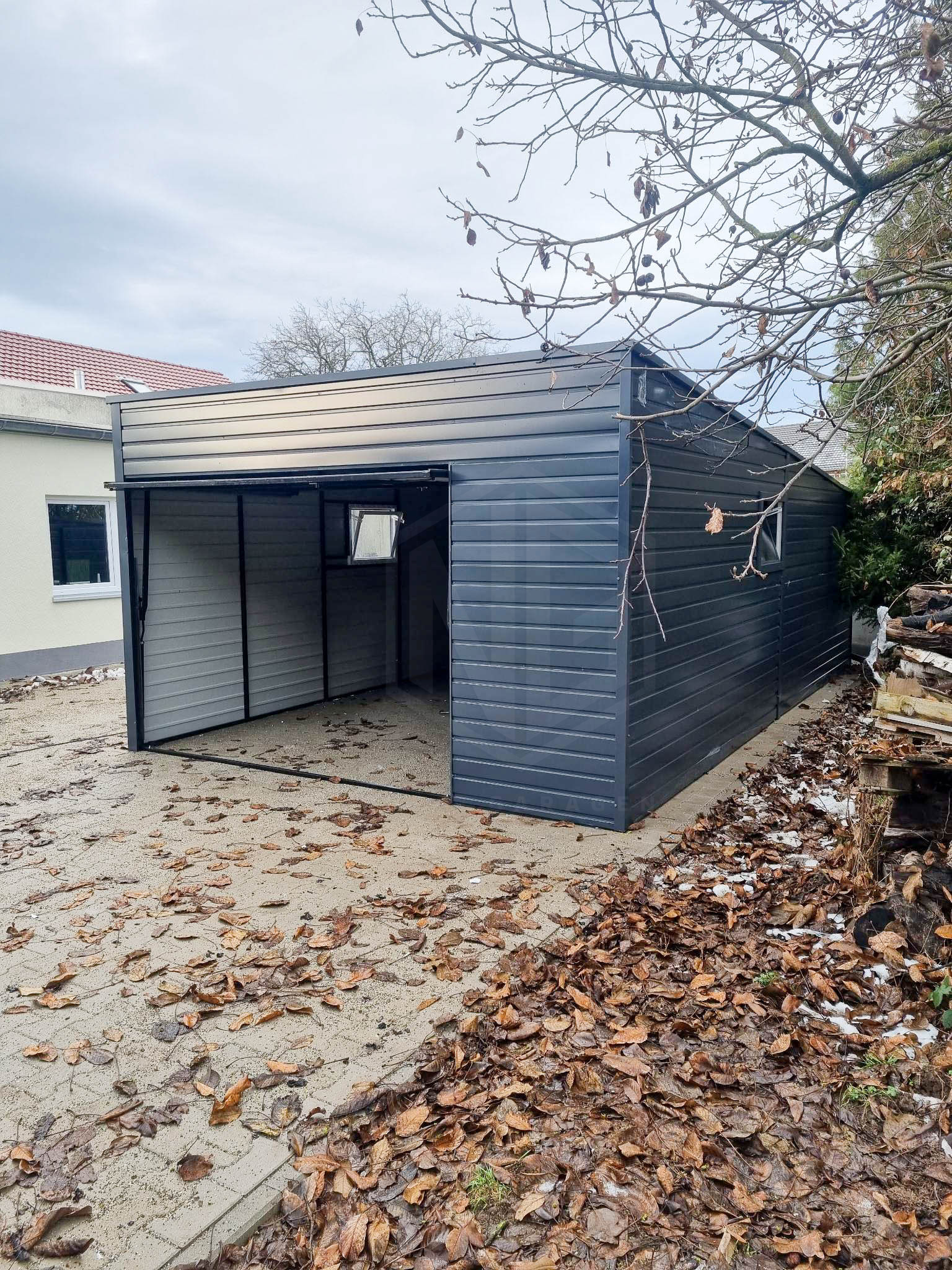 Blechgarage 4x7m – Schwingtor + Zusätzliche Tür – GP112