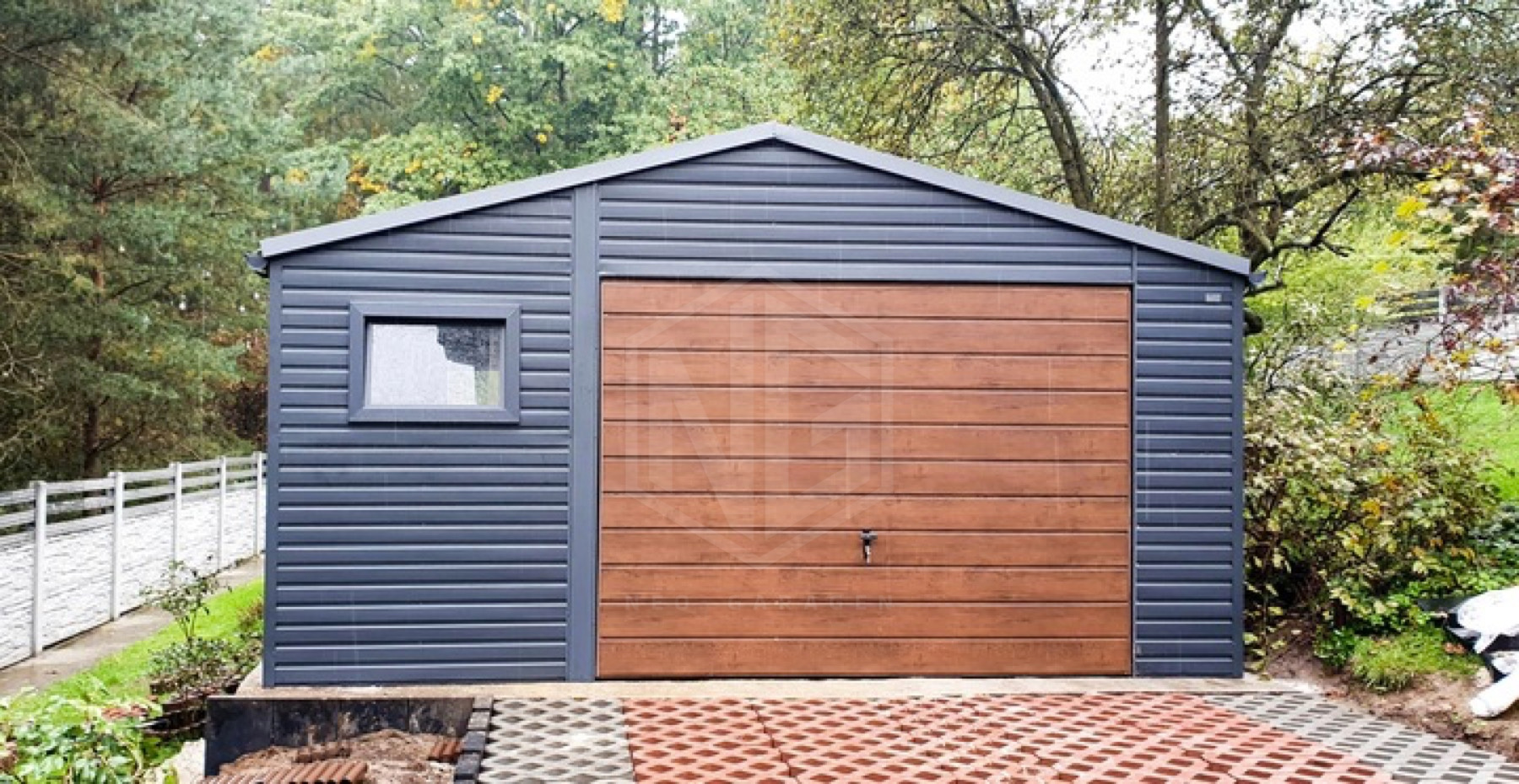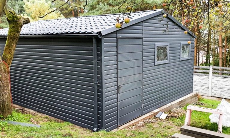 Blechgarage 5x5m Schwingtor Satteldach Anthrazit ID91