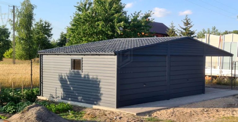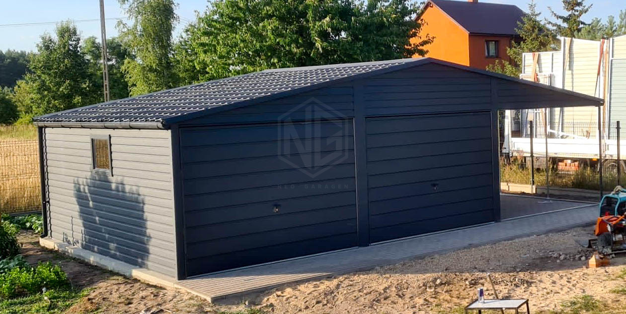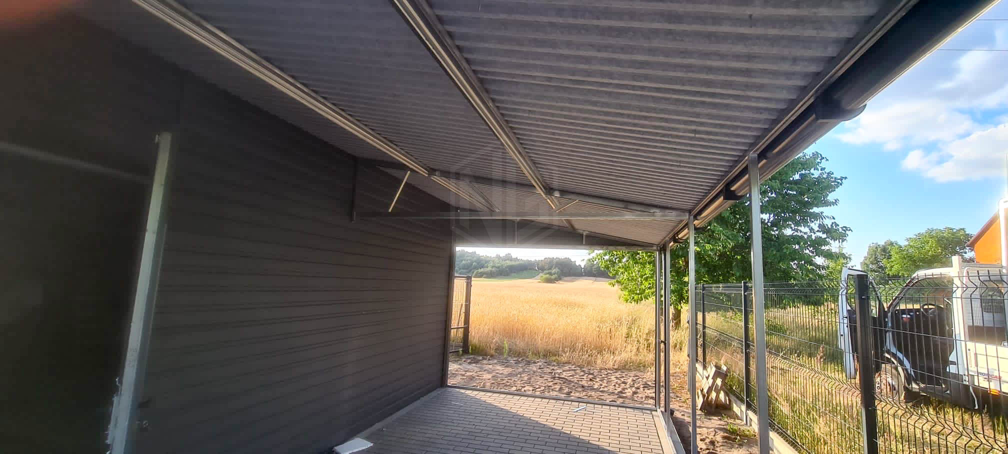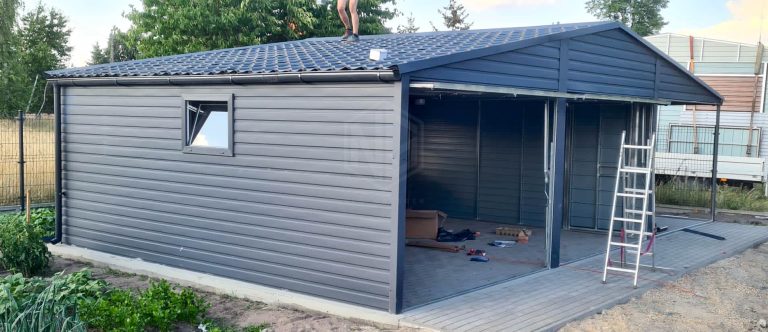 Blechgarage 6x6m Überdachung 3m Satteldach Schwingtor Dachrinnen Metalldachziegel ID280