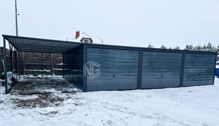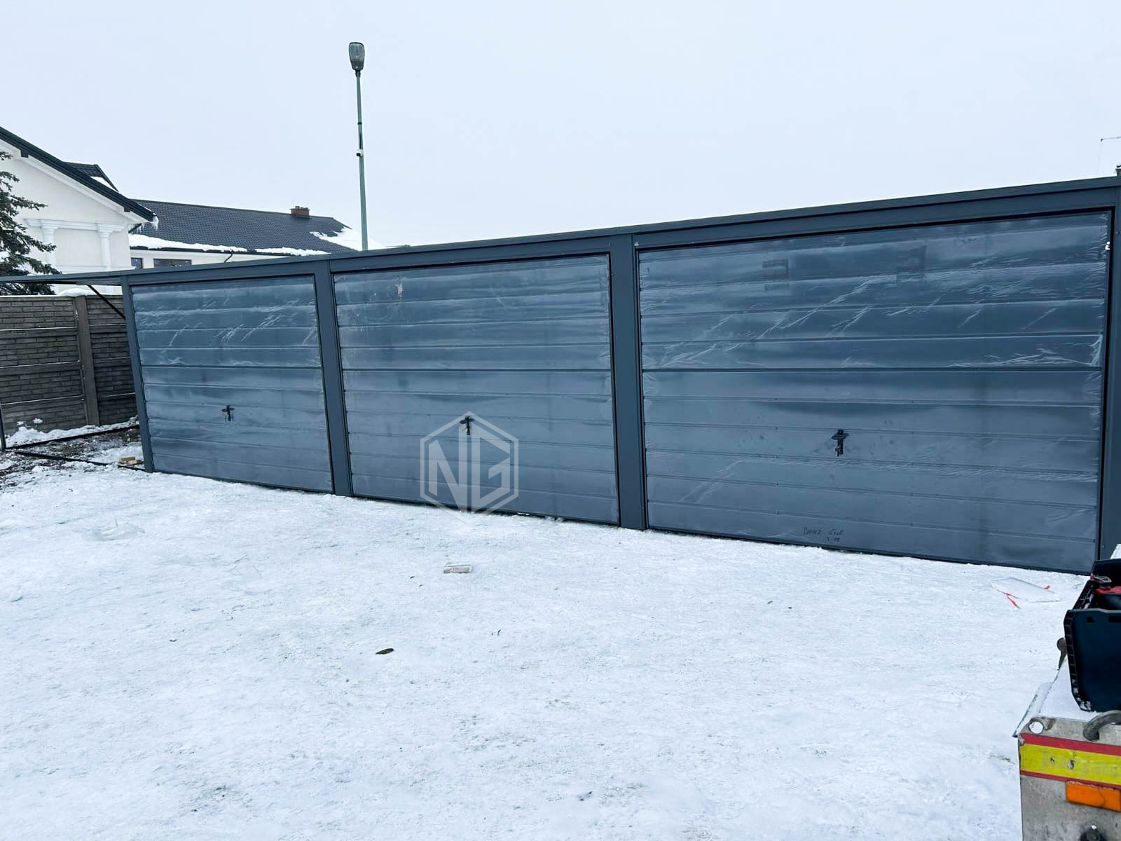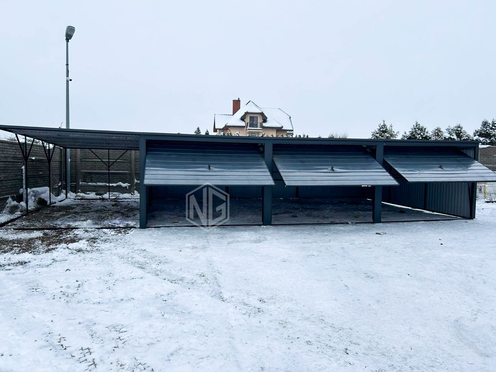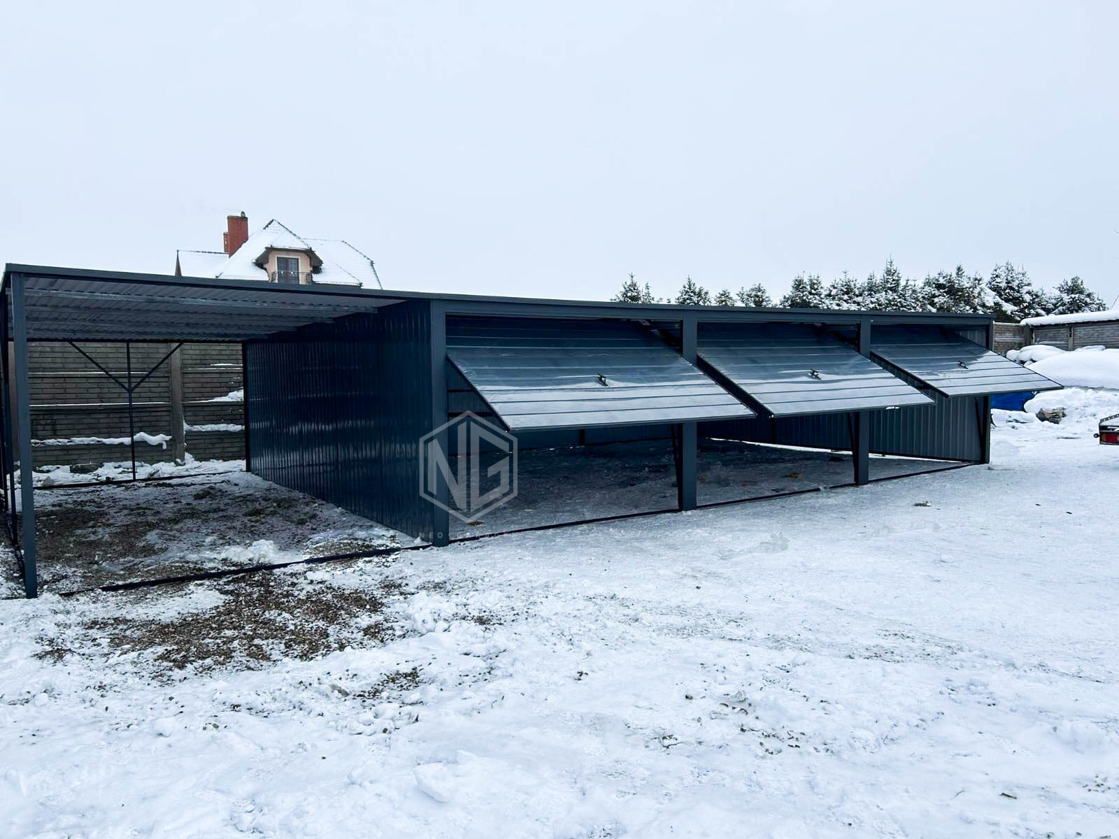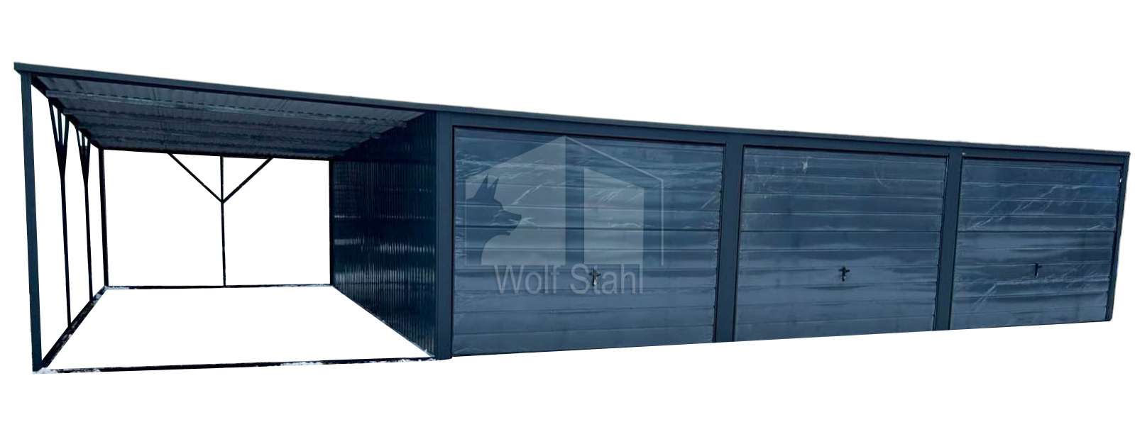 Blechgarage 9x6m Überdachung 3x Schwingtor Anthrazit Flachdach GP258