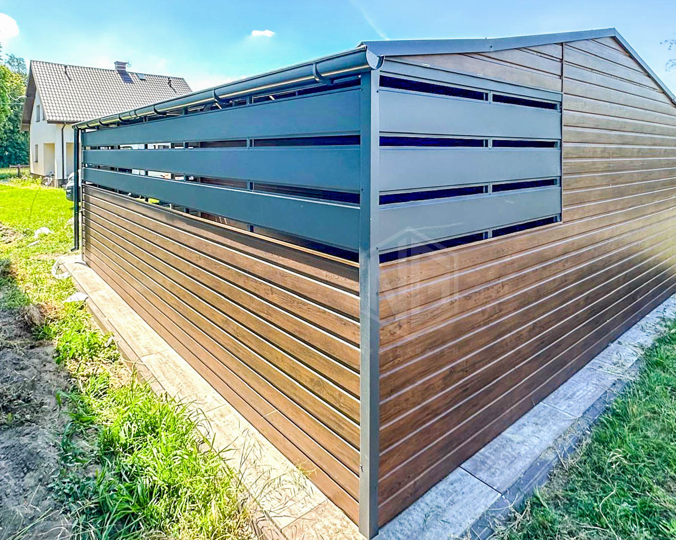 - Überdachung 2x6m vollständig mit Paneelen verkleidet ist Helles Walnussholz / Anthrazit