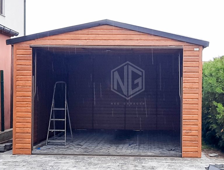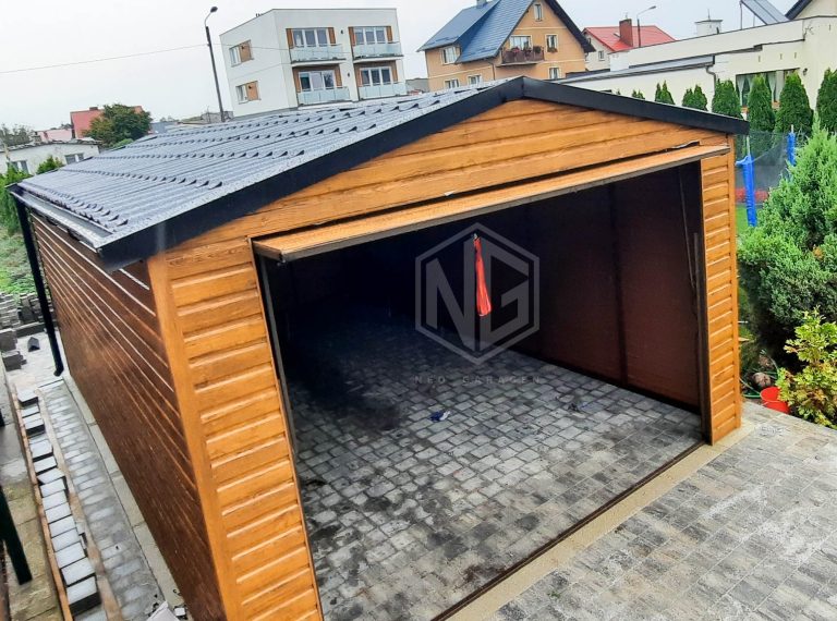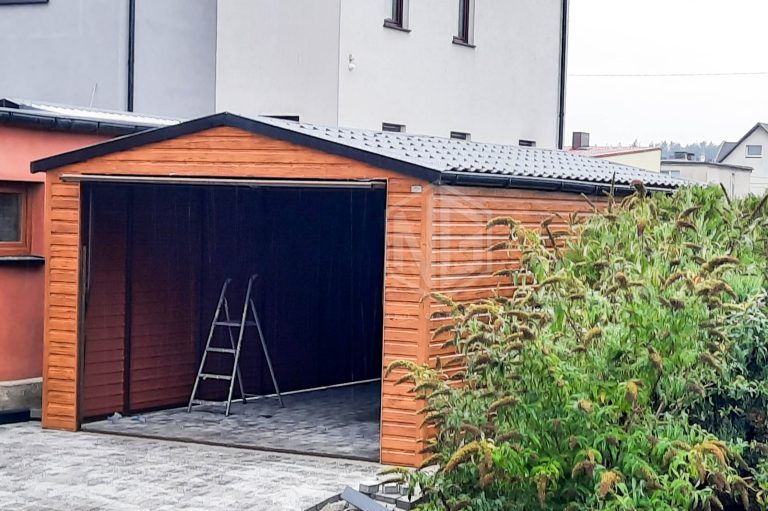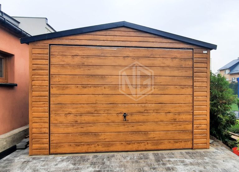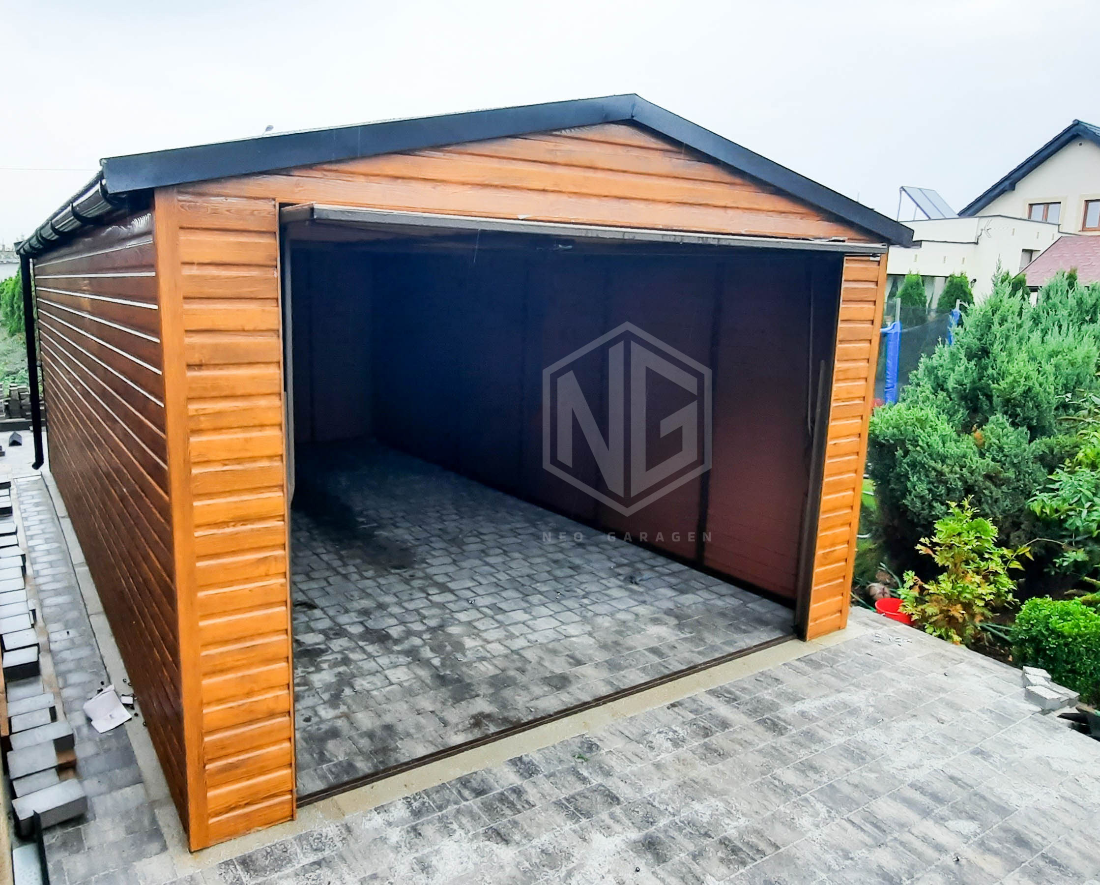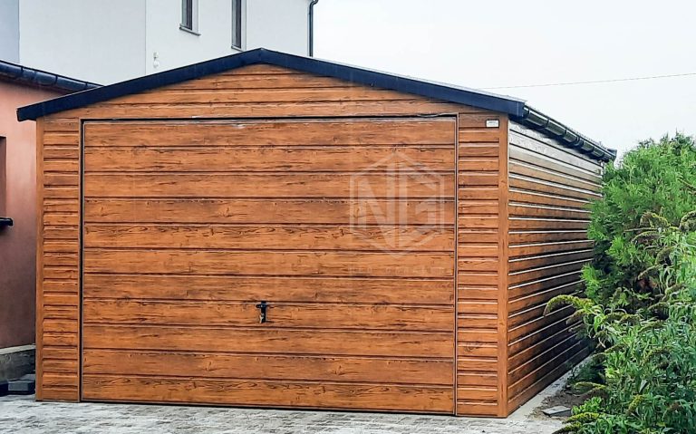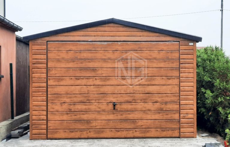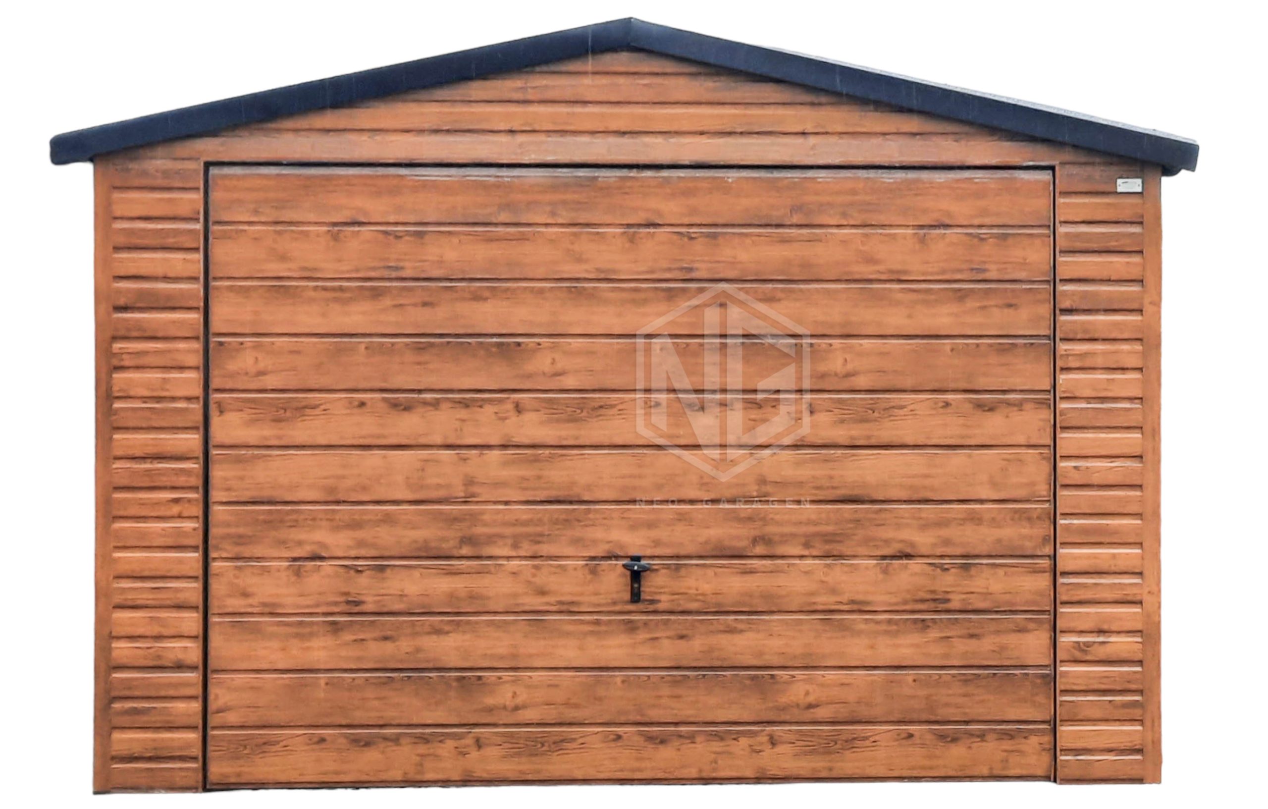 Blechgarage 4x5m Schwingtor Satteldach Holzoptik ID106