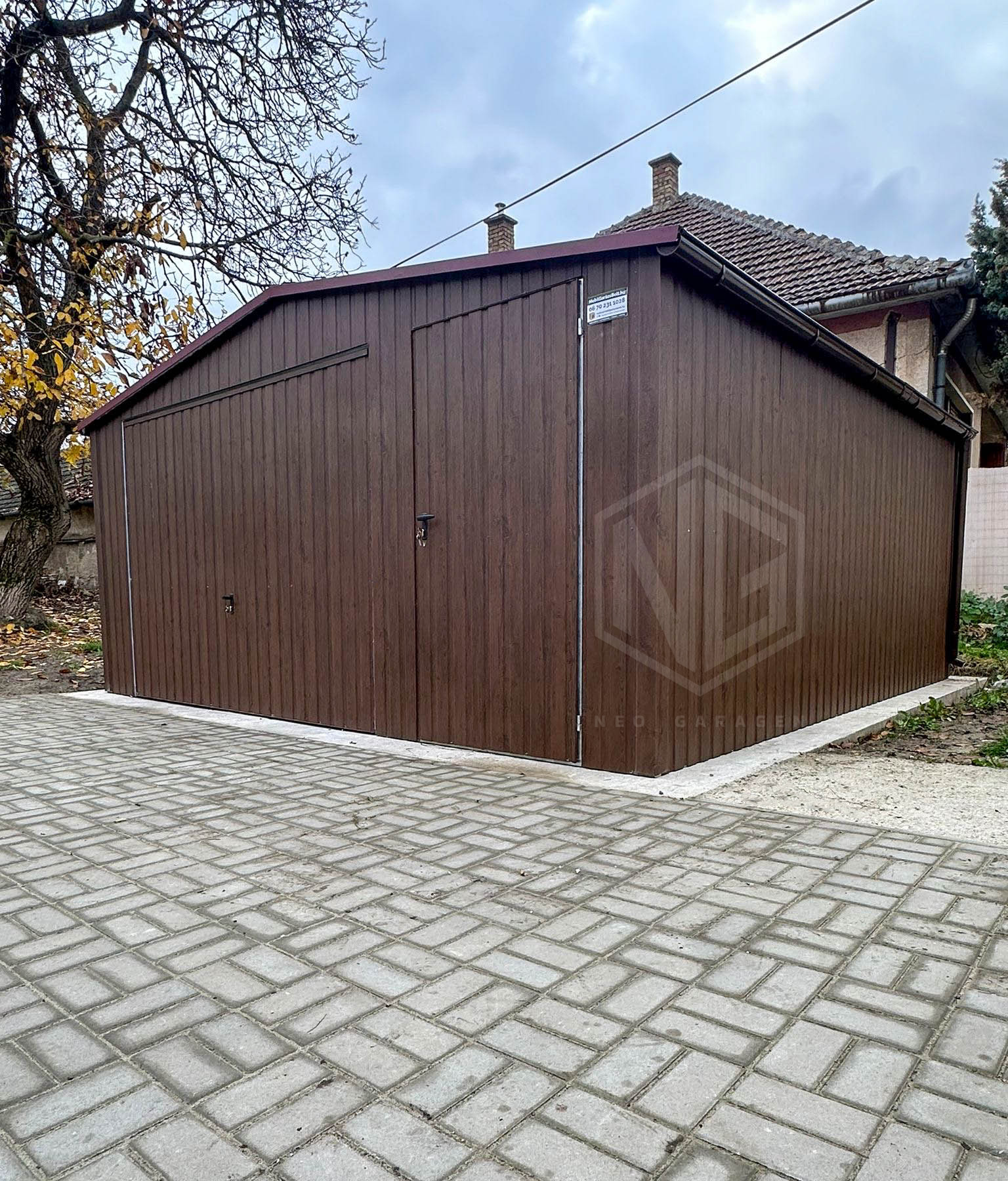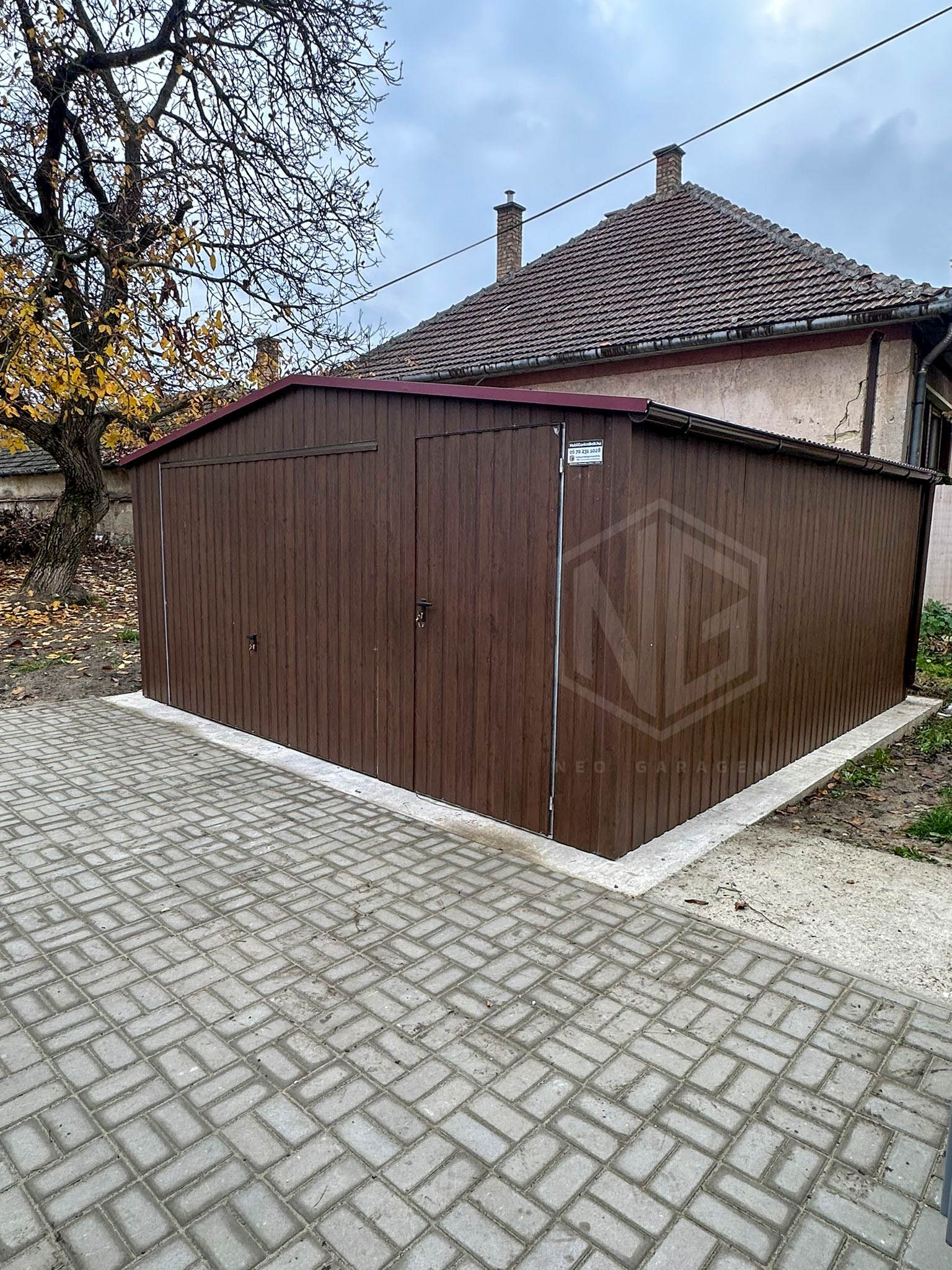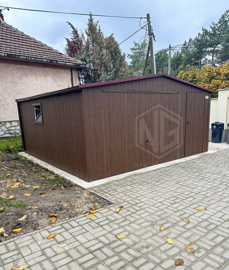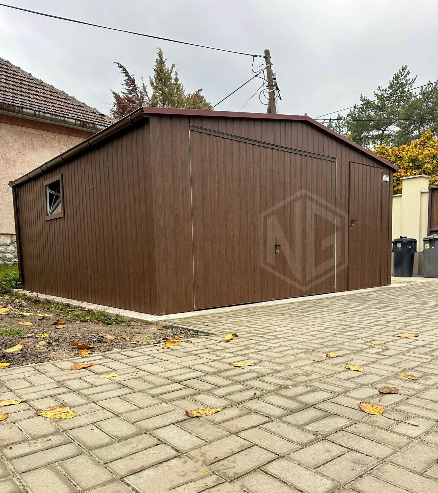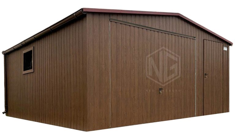 Blechgarage 5x5m Schwingtor – Tür – PVC Kippfenster – Holzoptik – Dachrinnen – Satteldach ID770