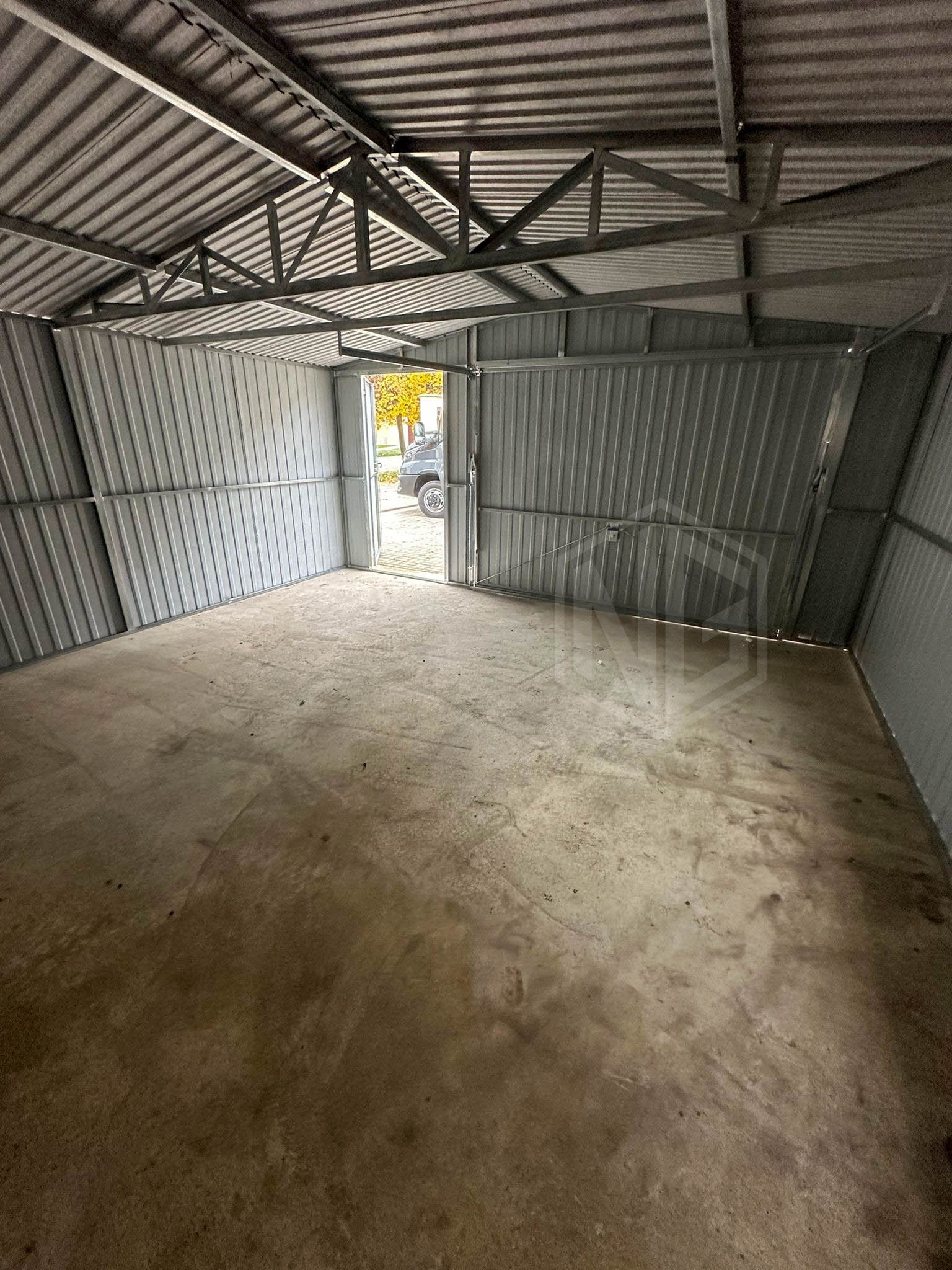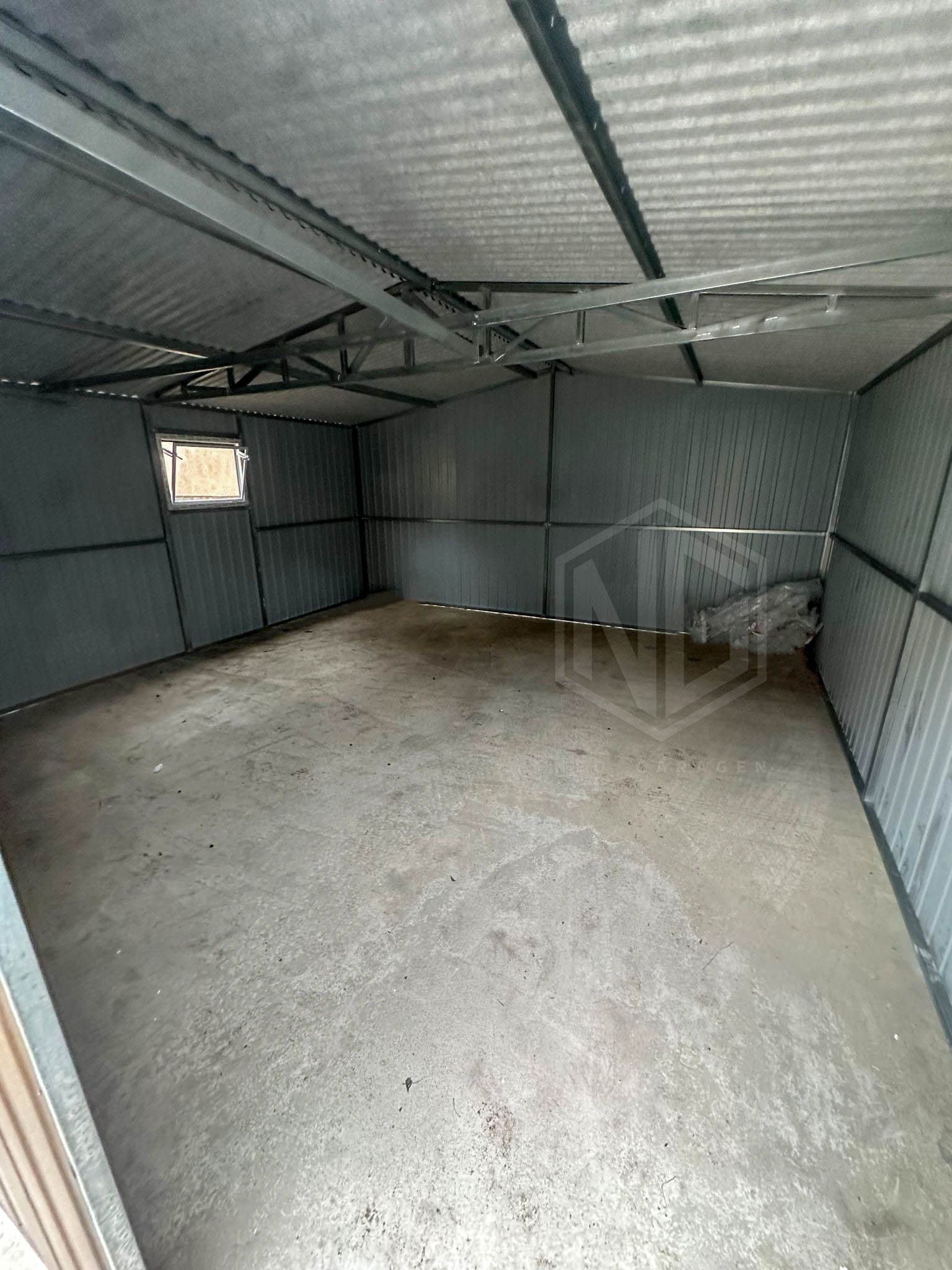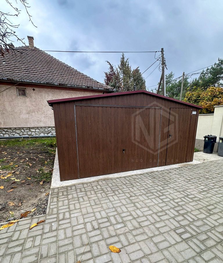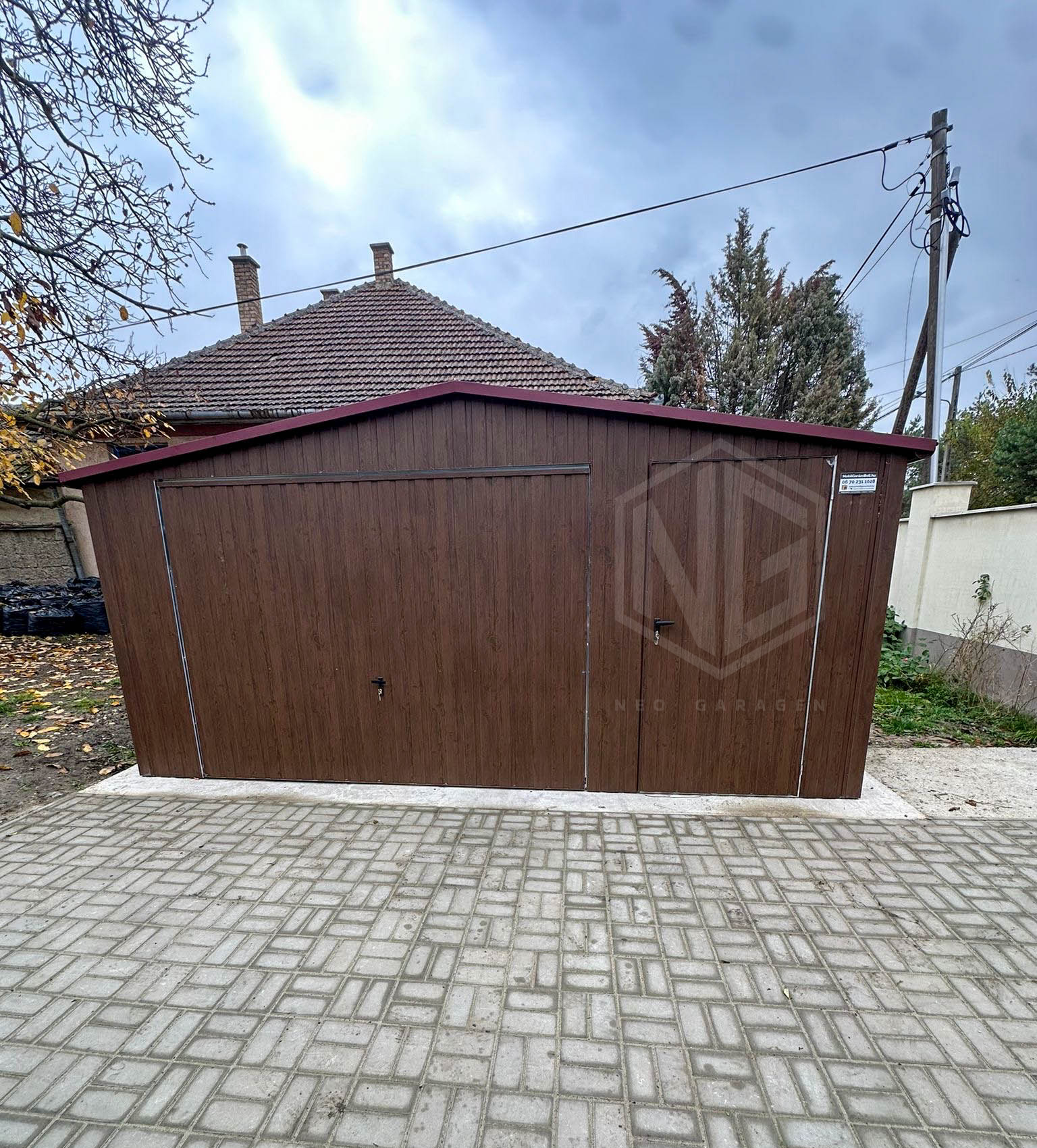 Blechgarage 5x5m Schwingtor – Tür – PVC Kippfenster – Holzoptik – Dachrinnen – Satteldach ID770