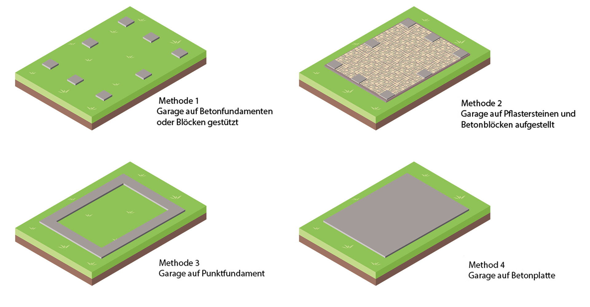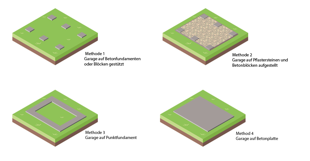 VOR DER MONTAGE EINER BLECHGARAGE ODER EINES GARTENHAUSES MUSS UNSER KUNDE DEN UNTERGRUND ENTSPRECHEND VORBEREITEN